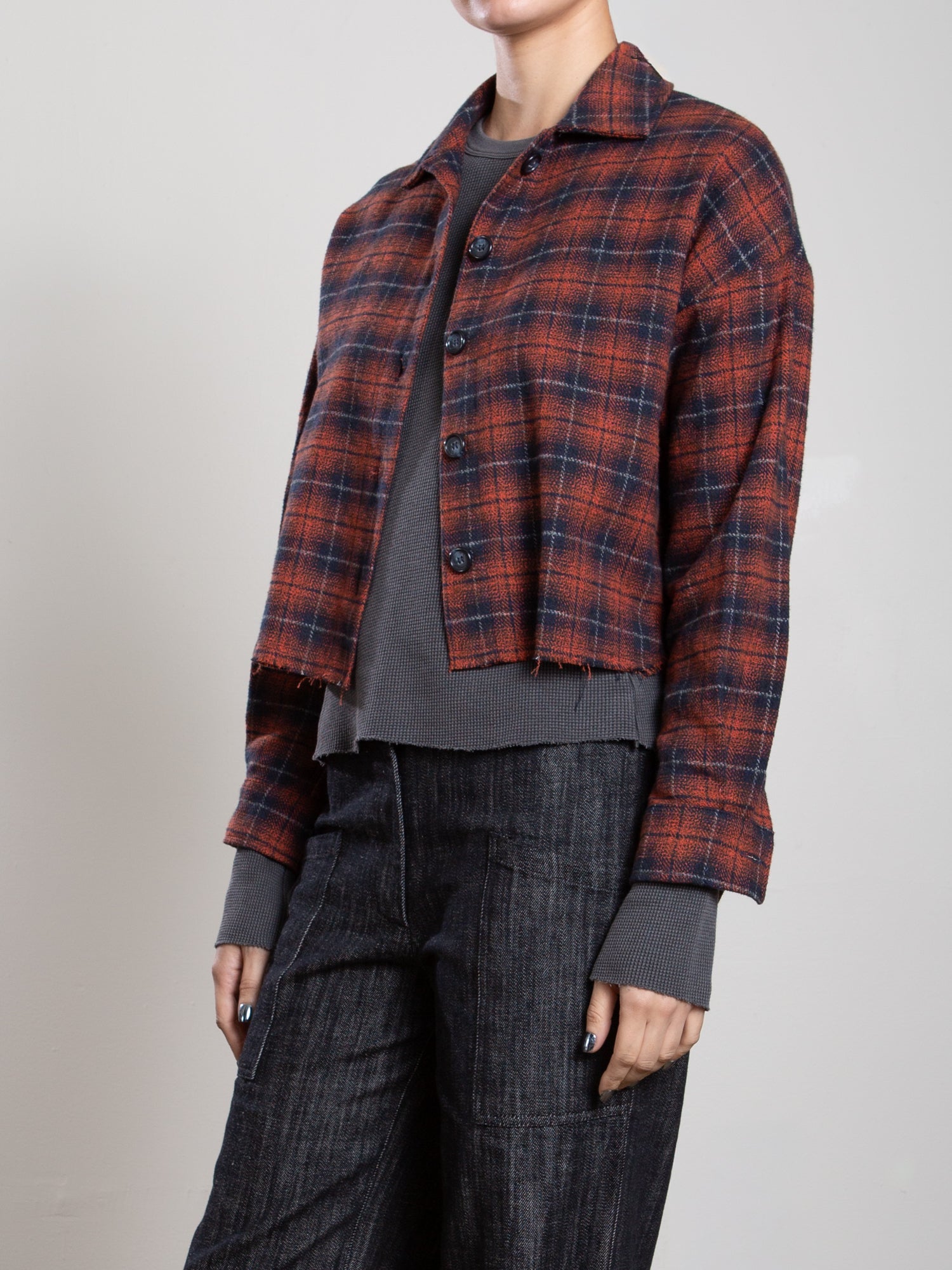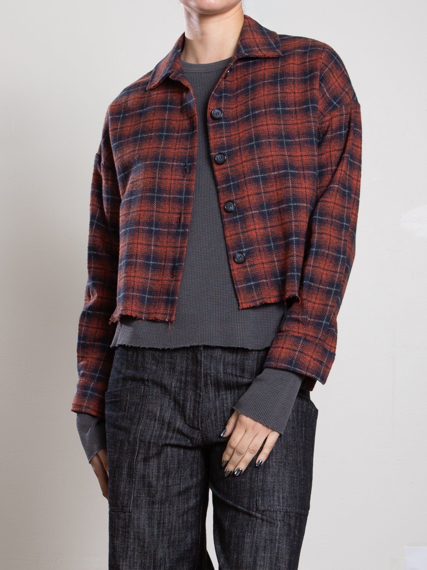 Esme Crop Shirt in Henderson Plaid - Red/Blue