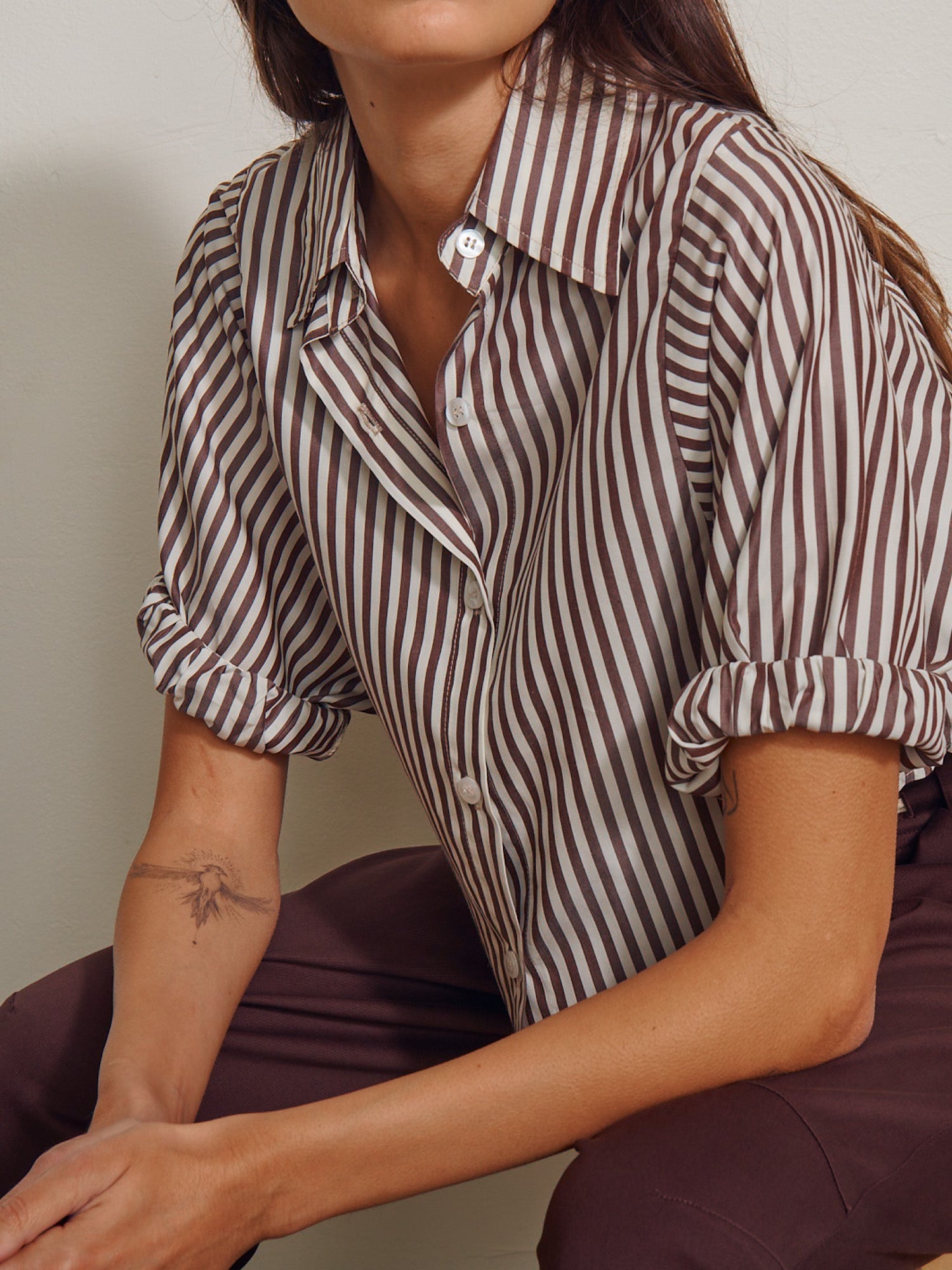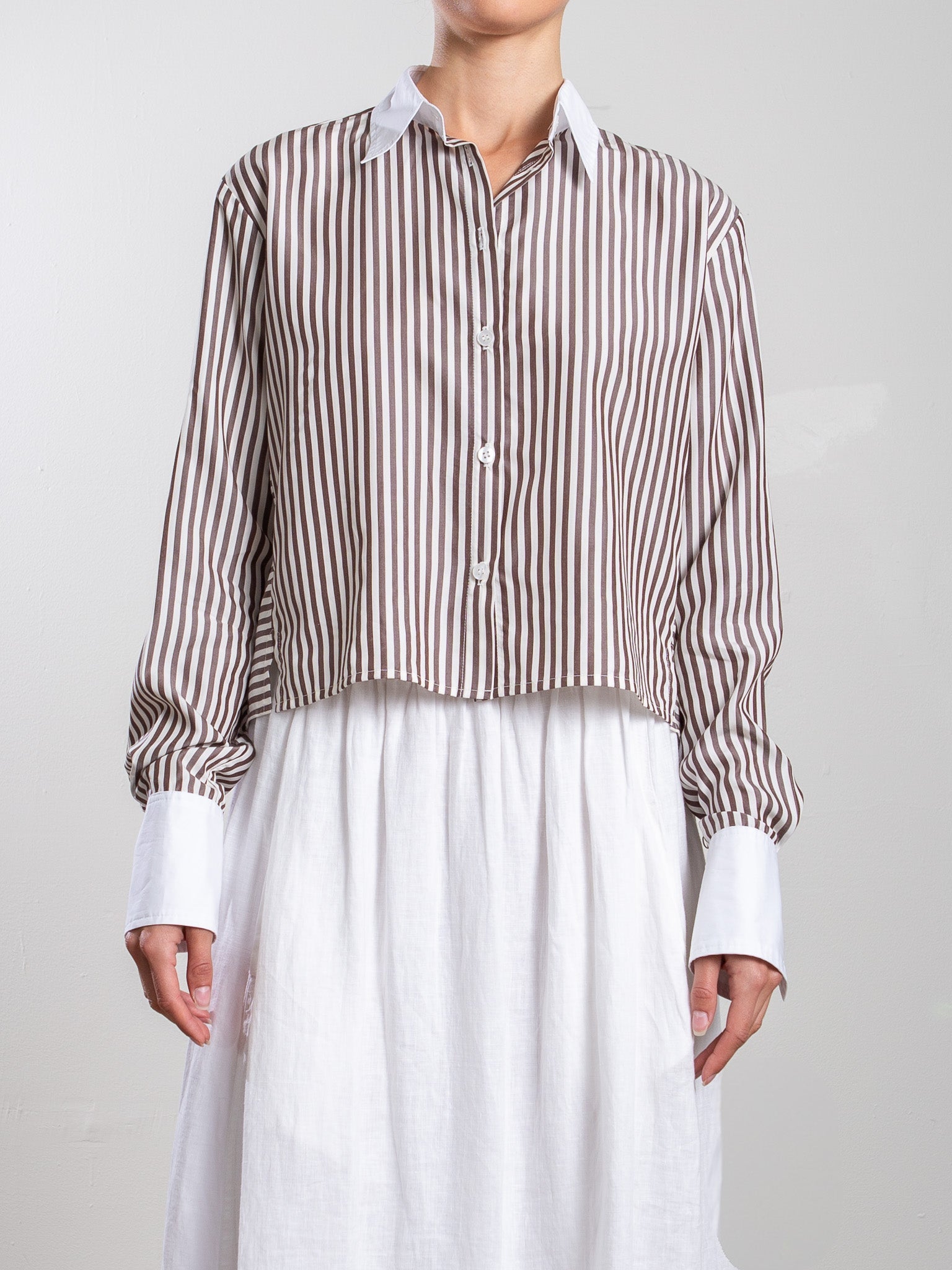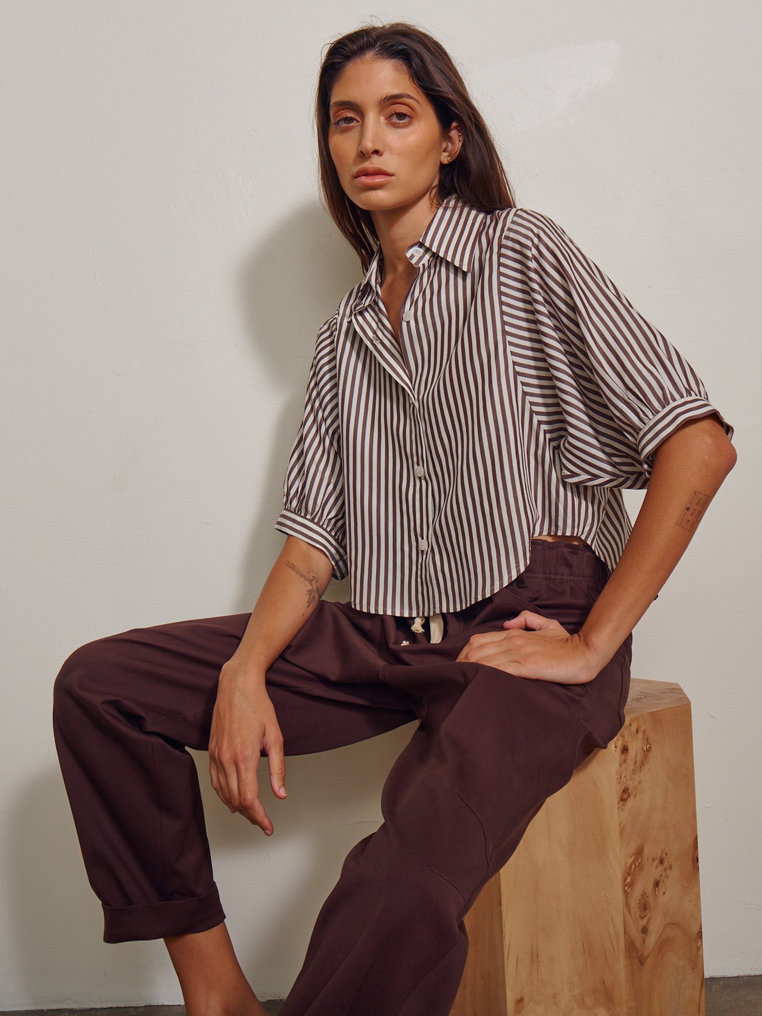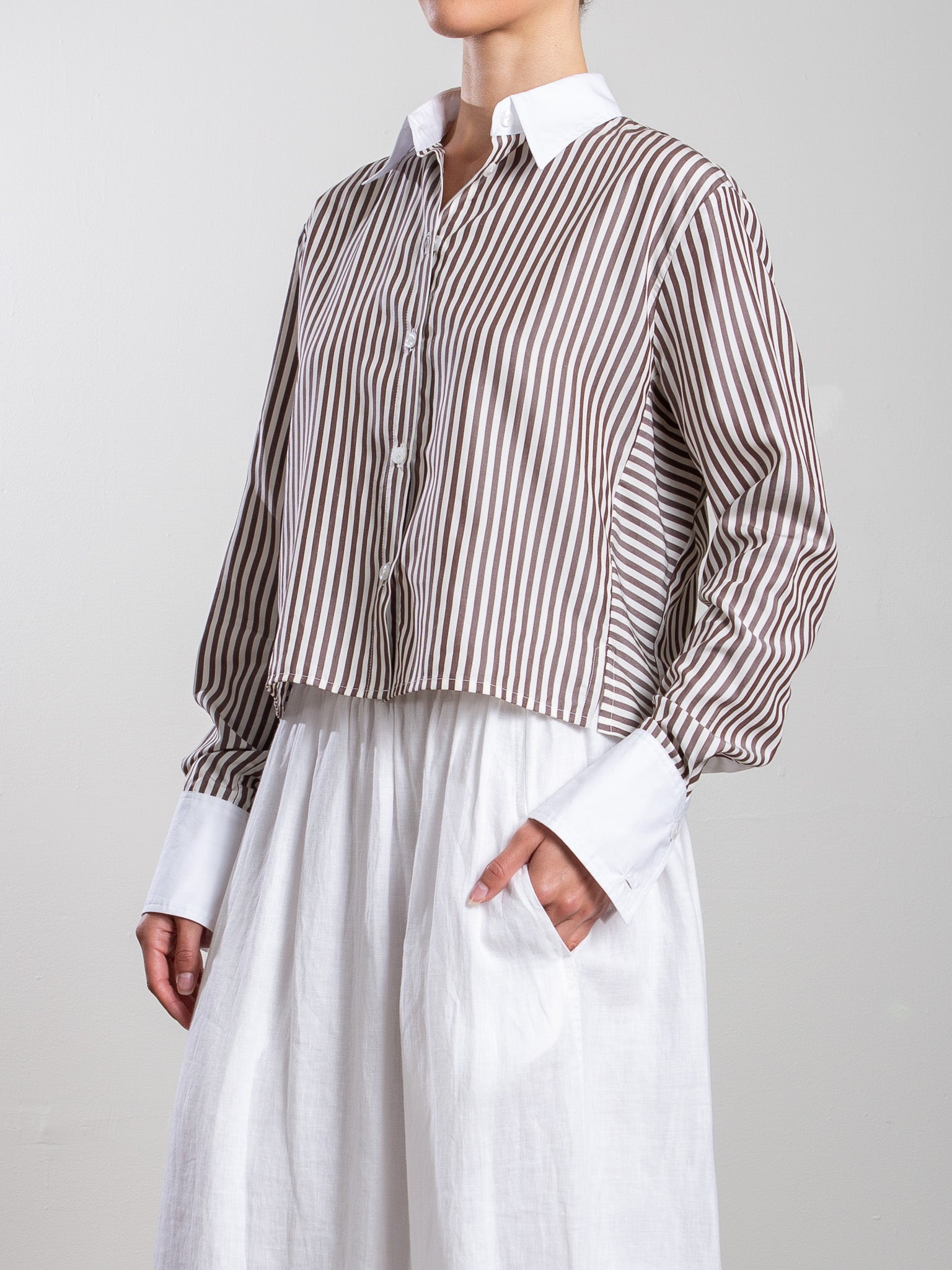 Claude Crop Shirt in Porto Stripe - Brown