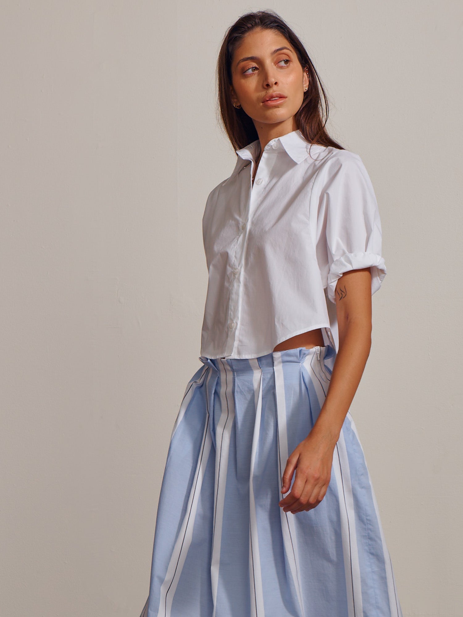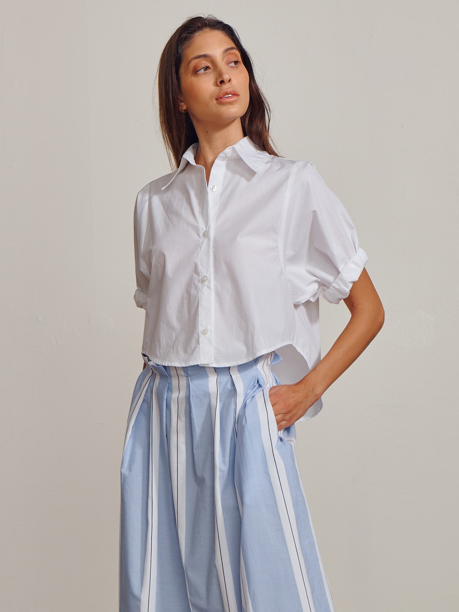Claude Crop Shirt in Marbella Poplin - White