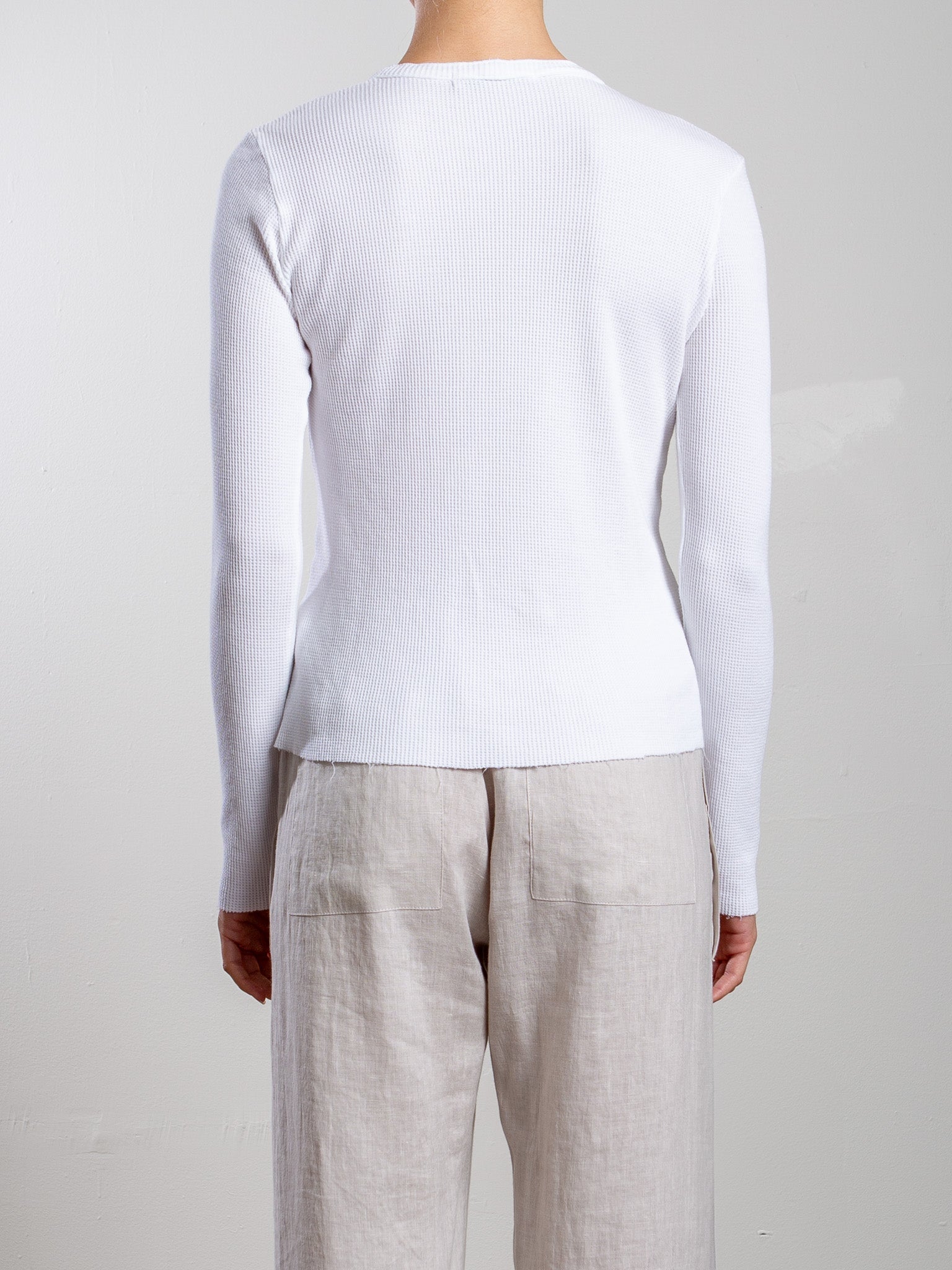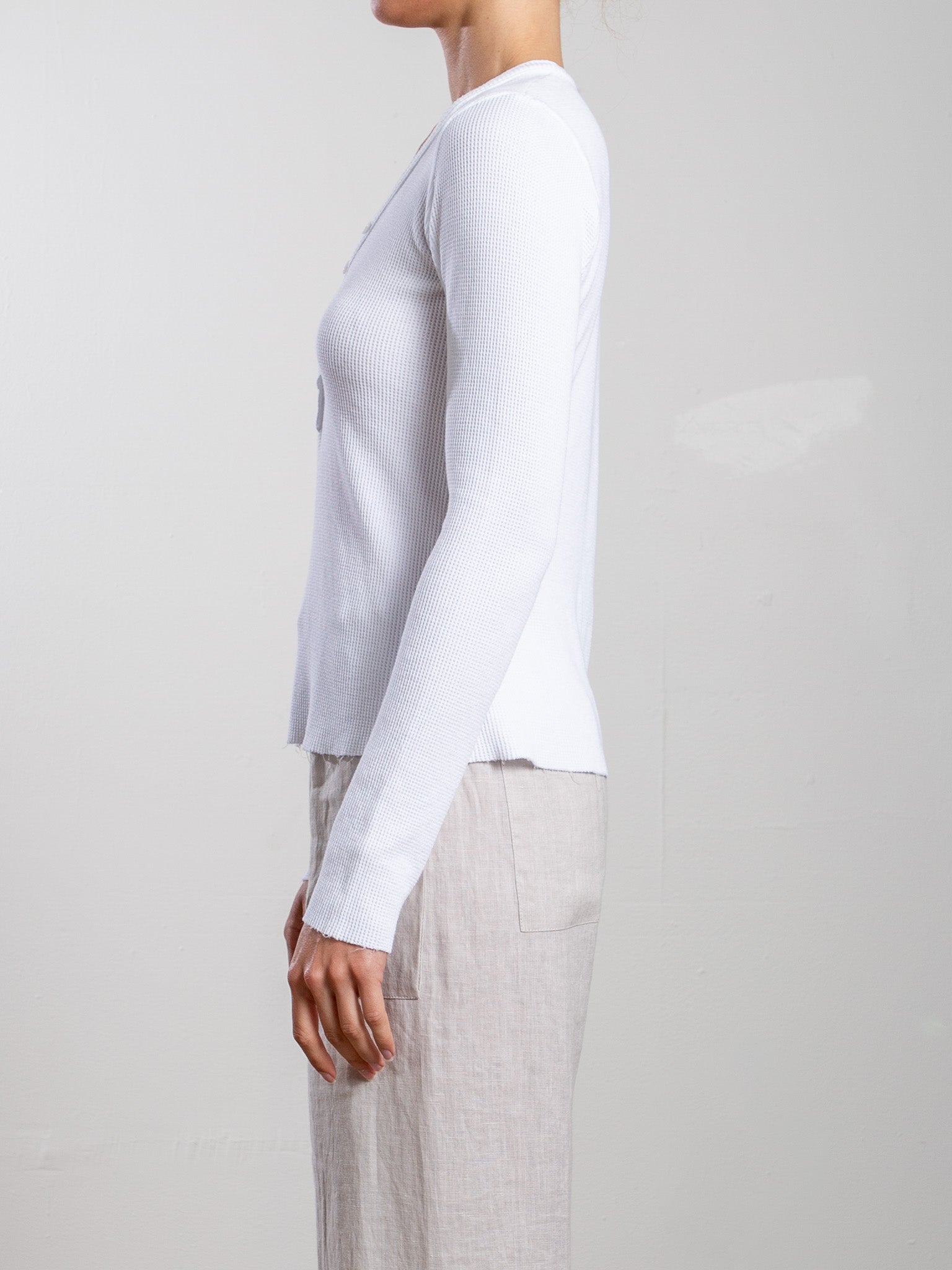 Y-neck henley with raw edge details. Made in Los Angeles.