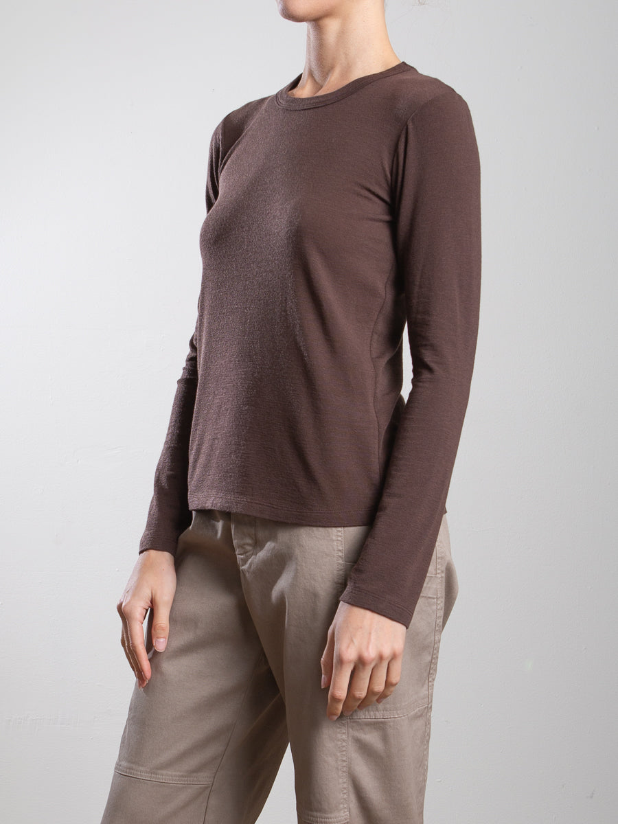 Jimmy Long-Sleeve Tee in Cashmere Jersey - Chocolate