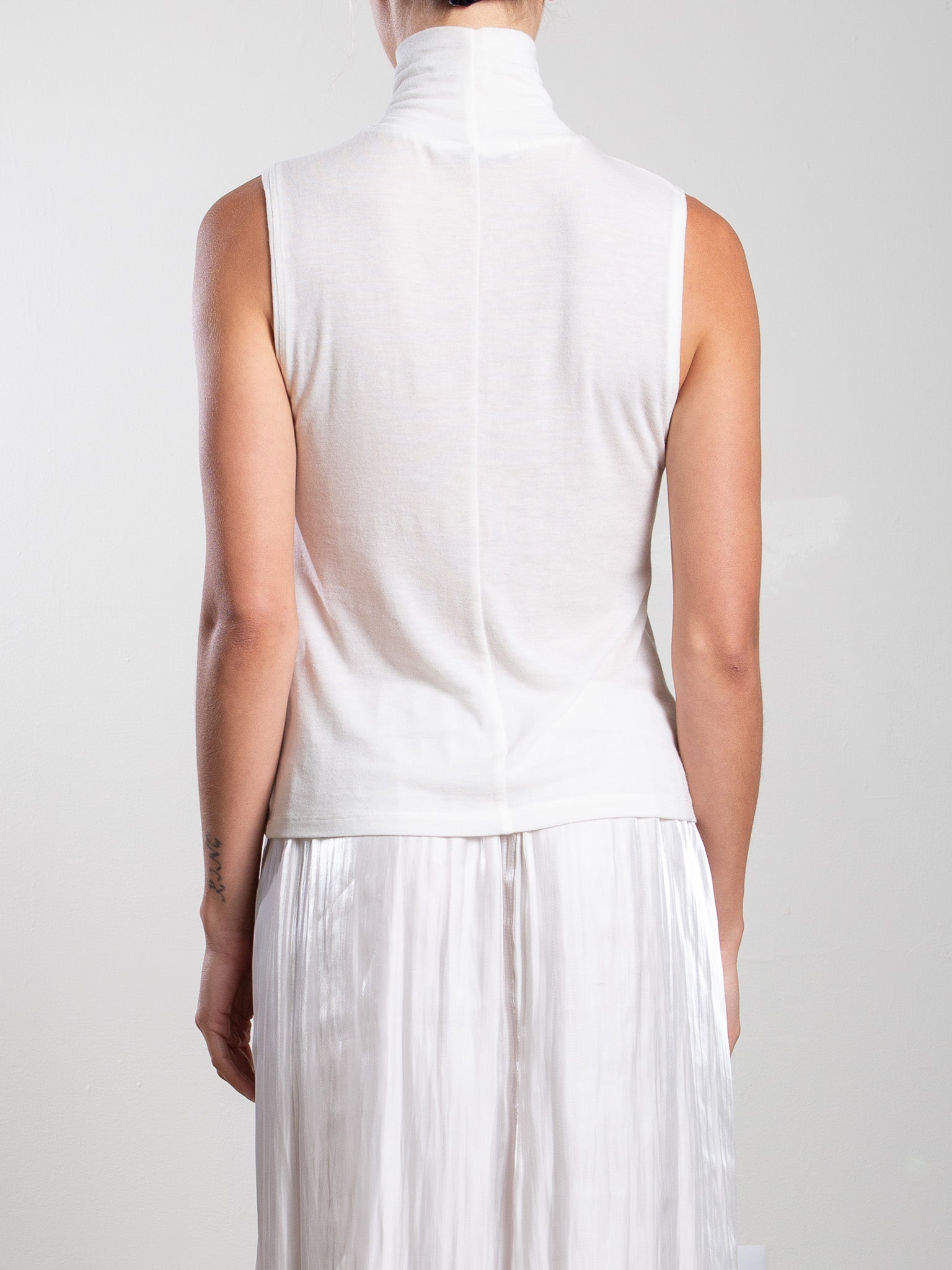 Cut in cashmere jersey, Maya is a sleeveless turtleneck designed to slip easily under blazers or stand alone with streamlined ease.