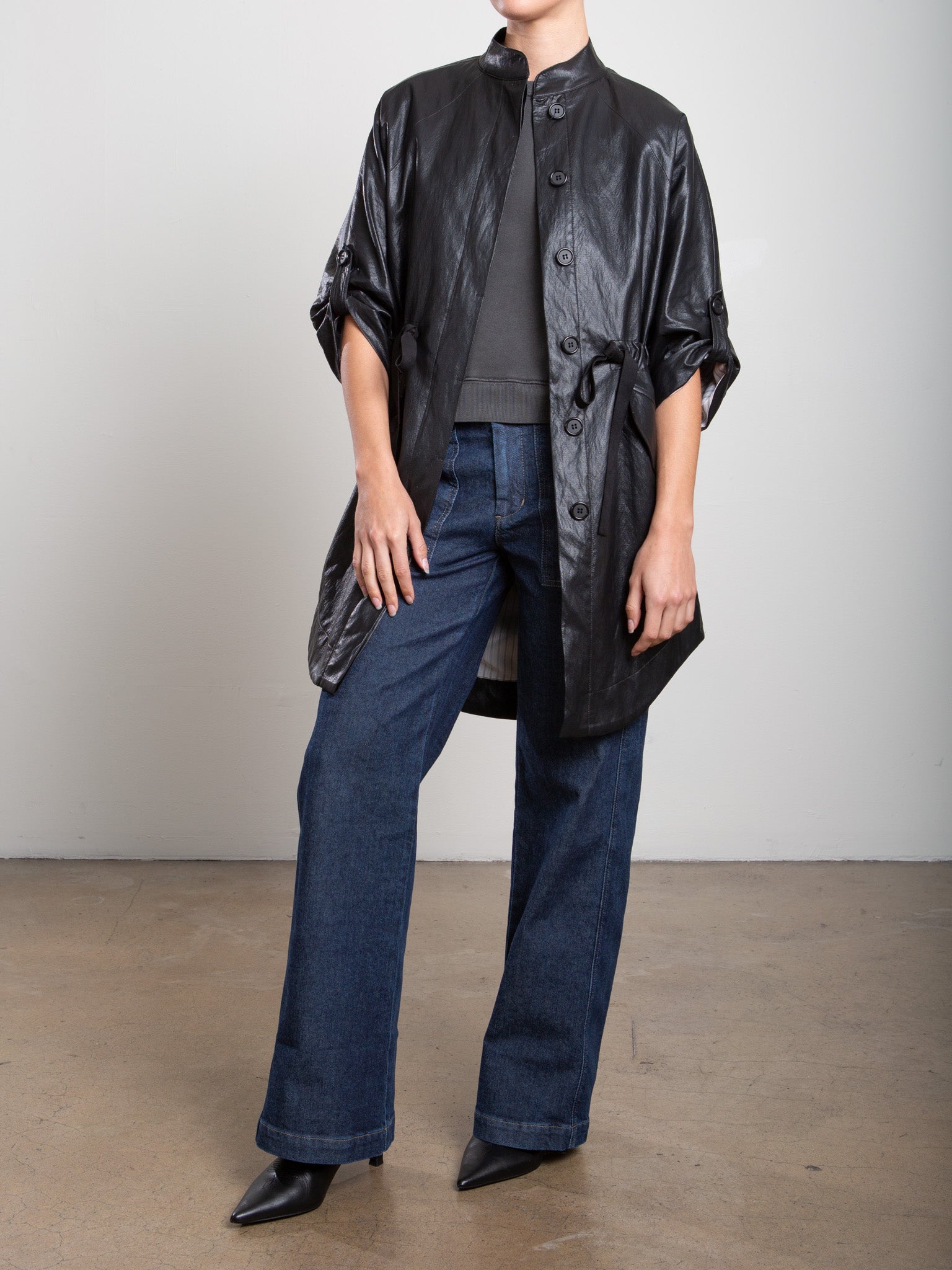 Simone Shirt Jacket in Vintage Satin - Night