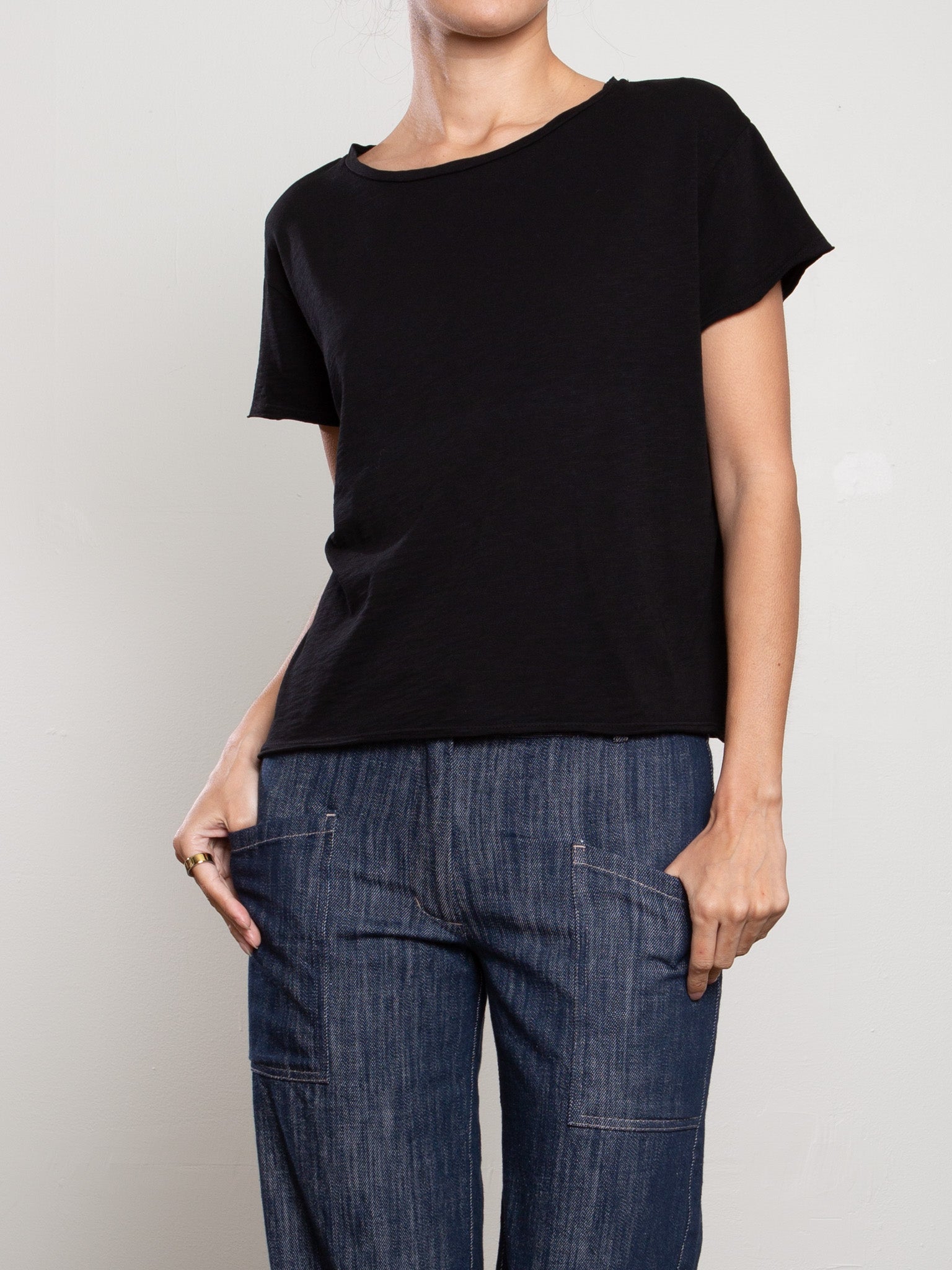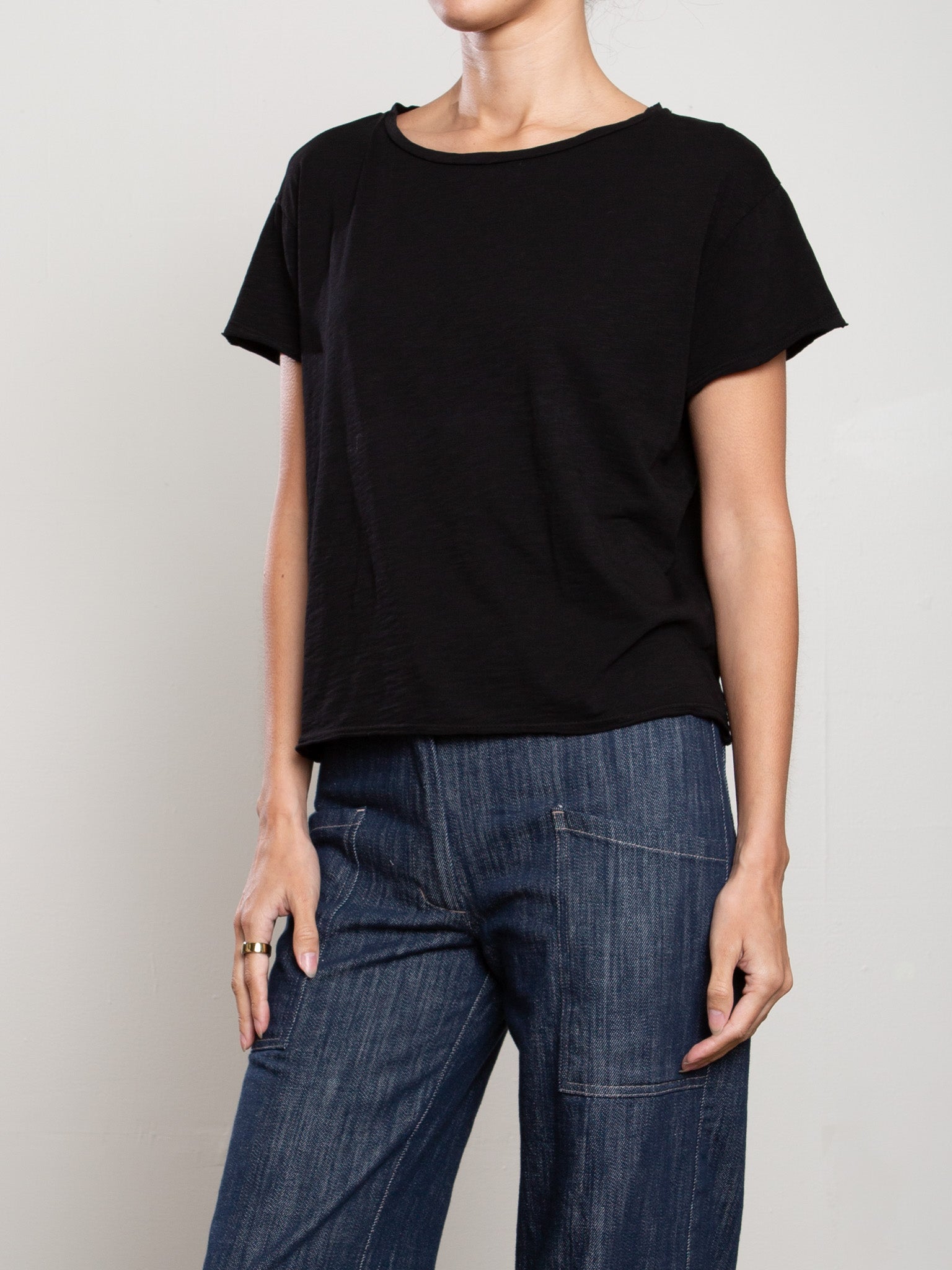 Kerri Boxy Crop Tee in Supima Slub - Black