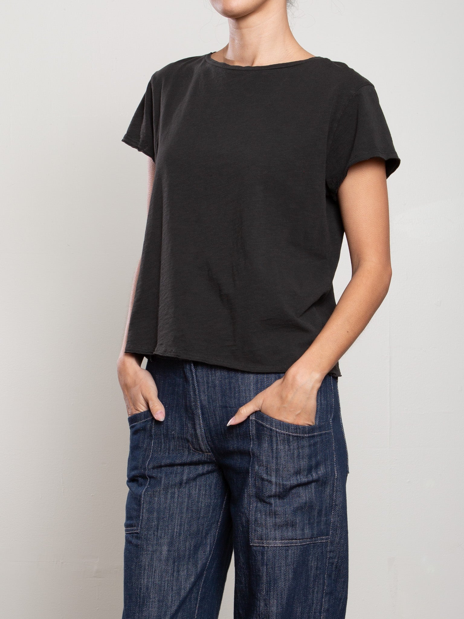 Kerri Boxy Crop Tee in Supima Slub - Vintage Black