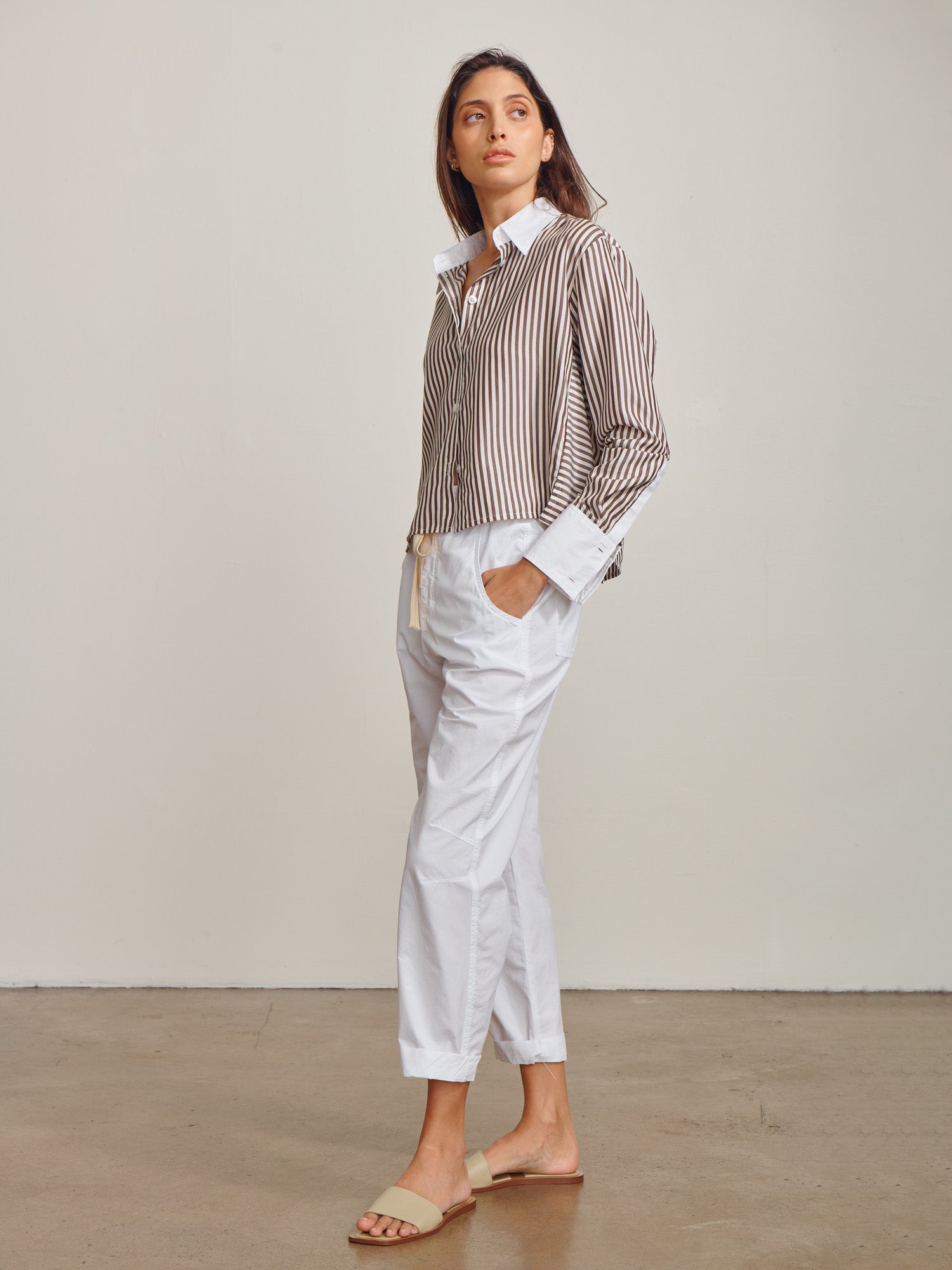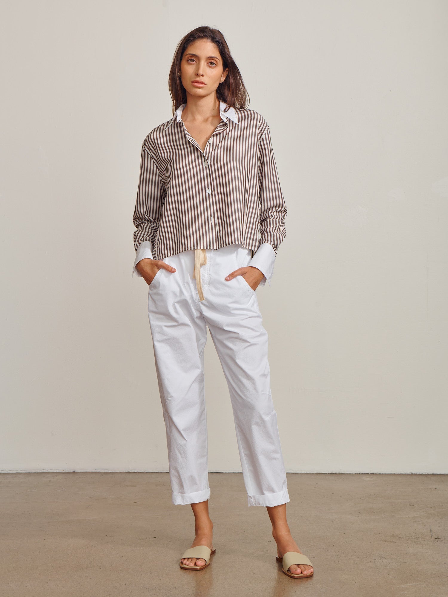Claude Crop Shirt in Marbella Poplin - White