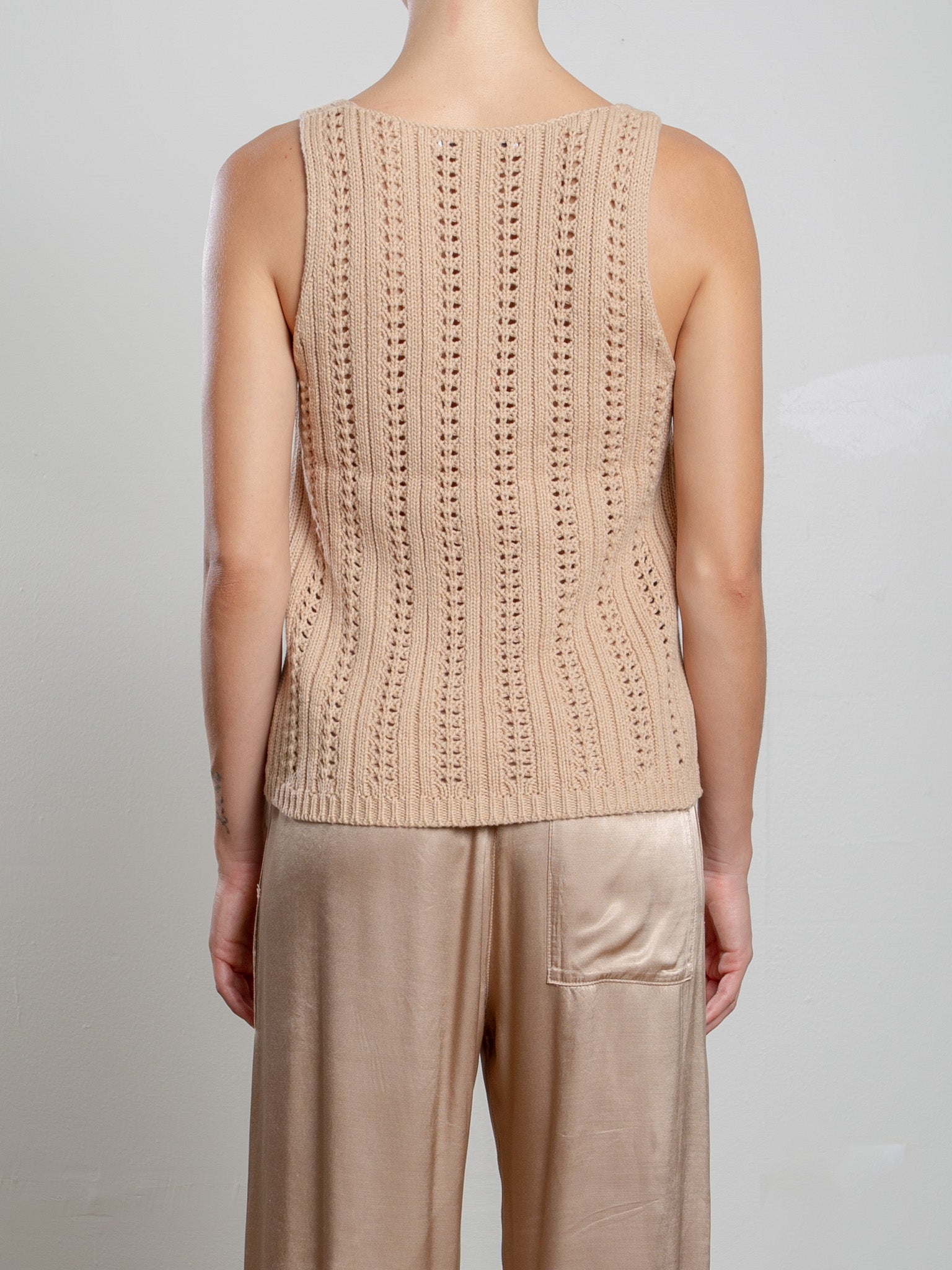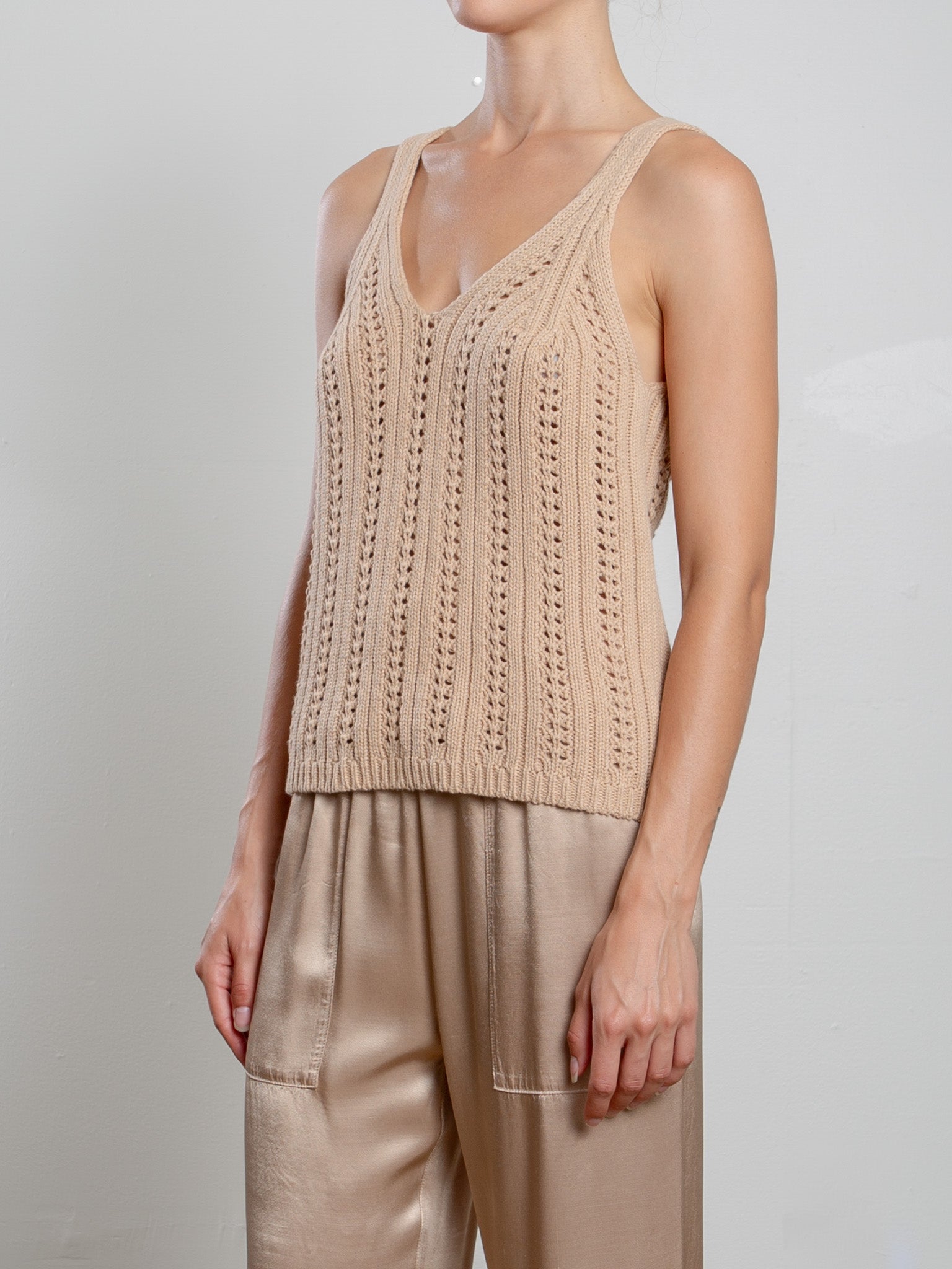 V-neck tank with pointelle details.