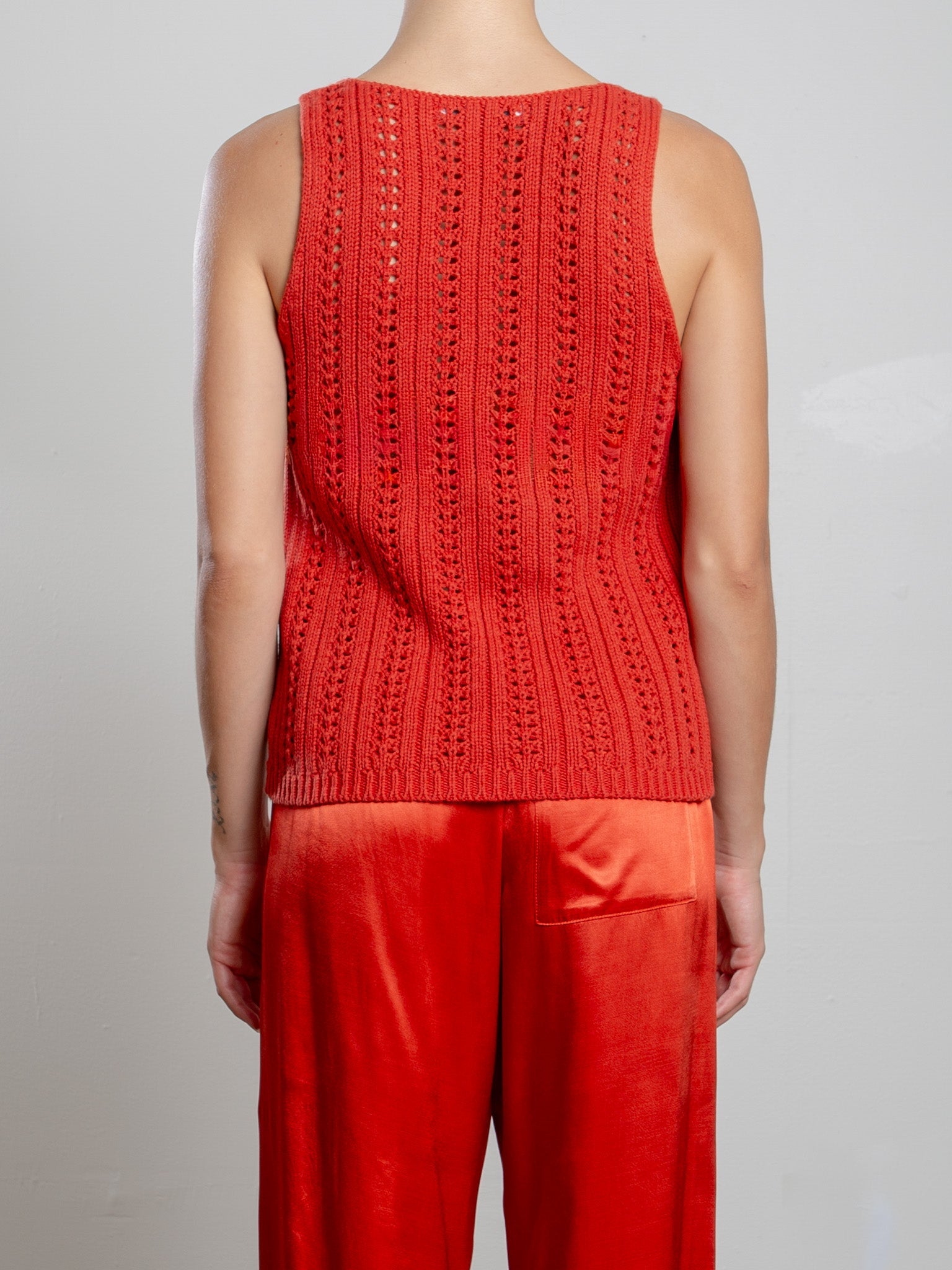 V-neck tank with pointelle details.