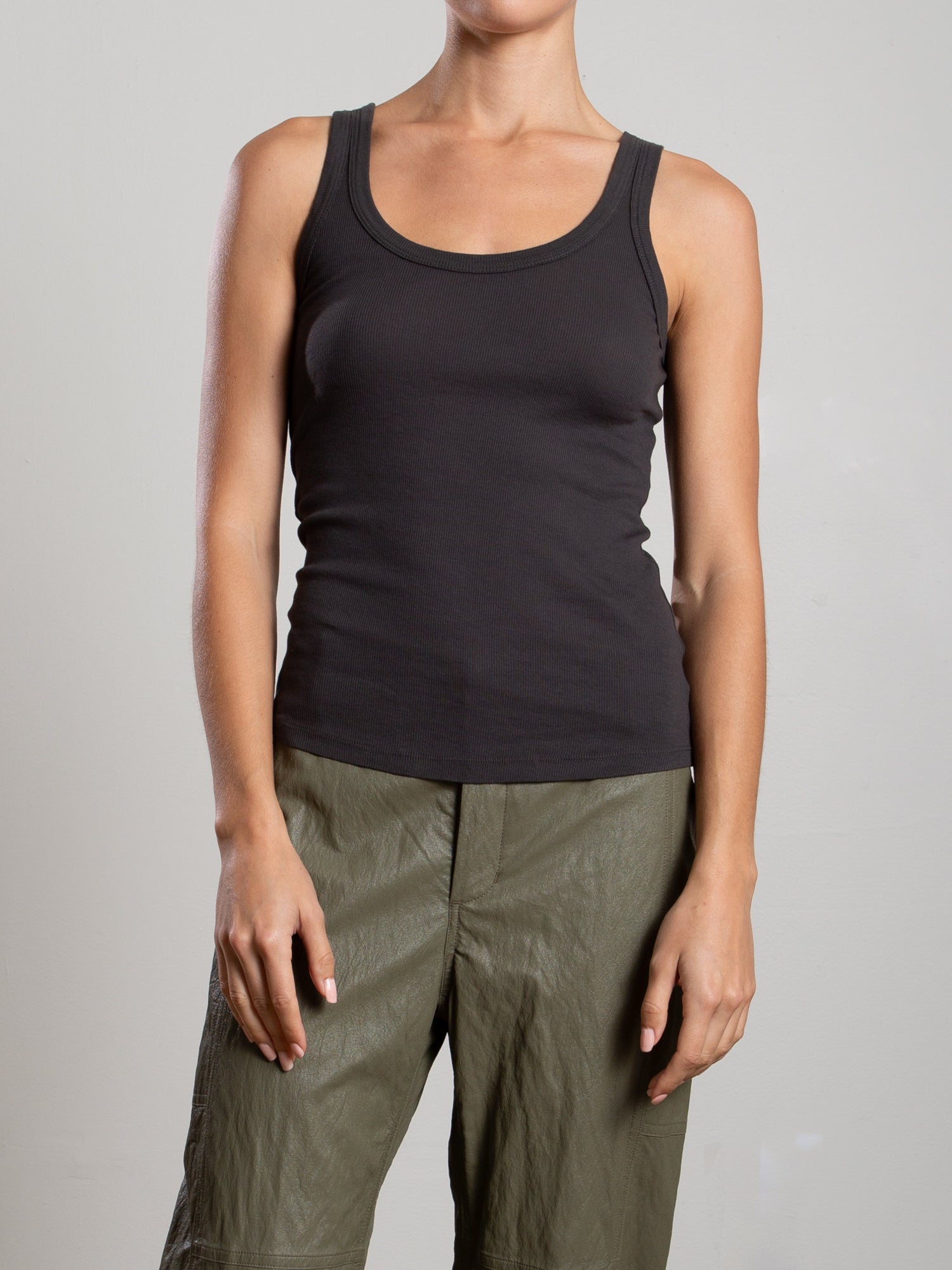Athena Hi-Neck Tank in Lightweight Rib - Carbon