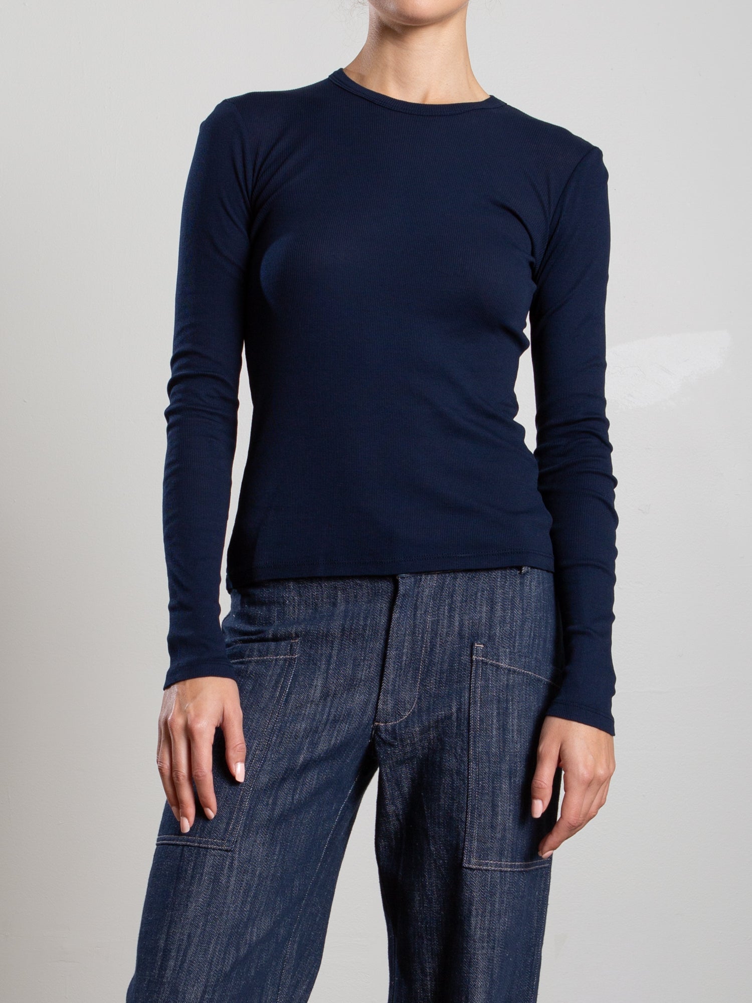 Jimmy Long-Sleeve Tee in Lightweight Rib - Midnight