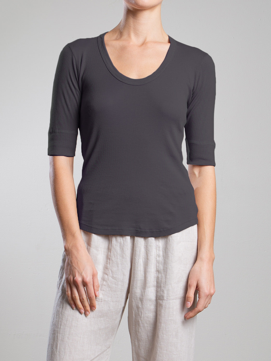 Jimmy Long-Sleeve Tee in Lightweight Rib - Carbon
