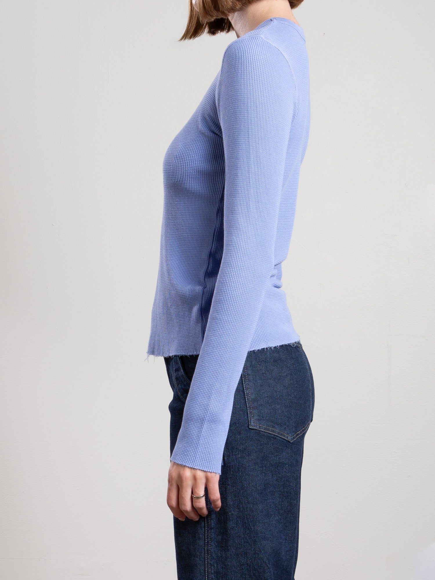 The Jimmy Long-Sleeve Tee in Thermal features raw edge details and a classic fit that doesn’t cling. Soft, textured, and endlessly wearable—this best-seller fits like a second skin.