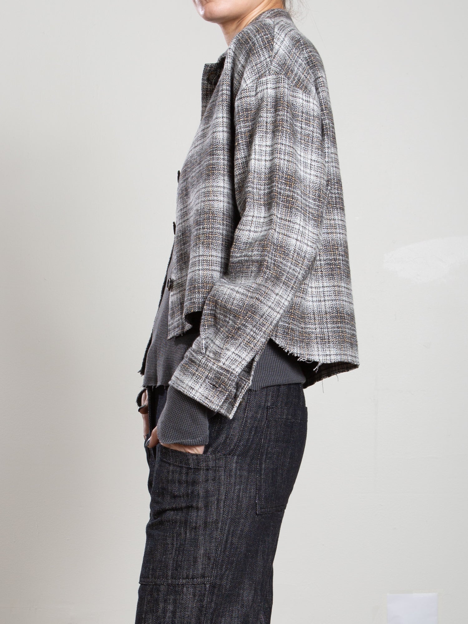 Esme Crop Shirt in Henderson Plaid - Grey/Ivory