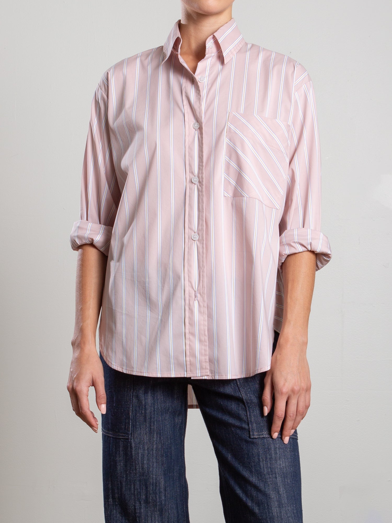Marvin Shirt in Italian Poplin Stripe - Light Pink