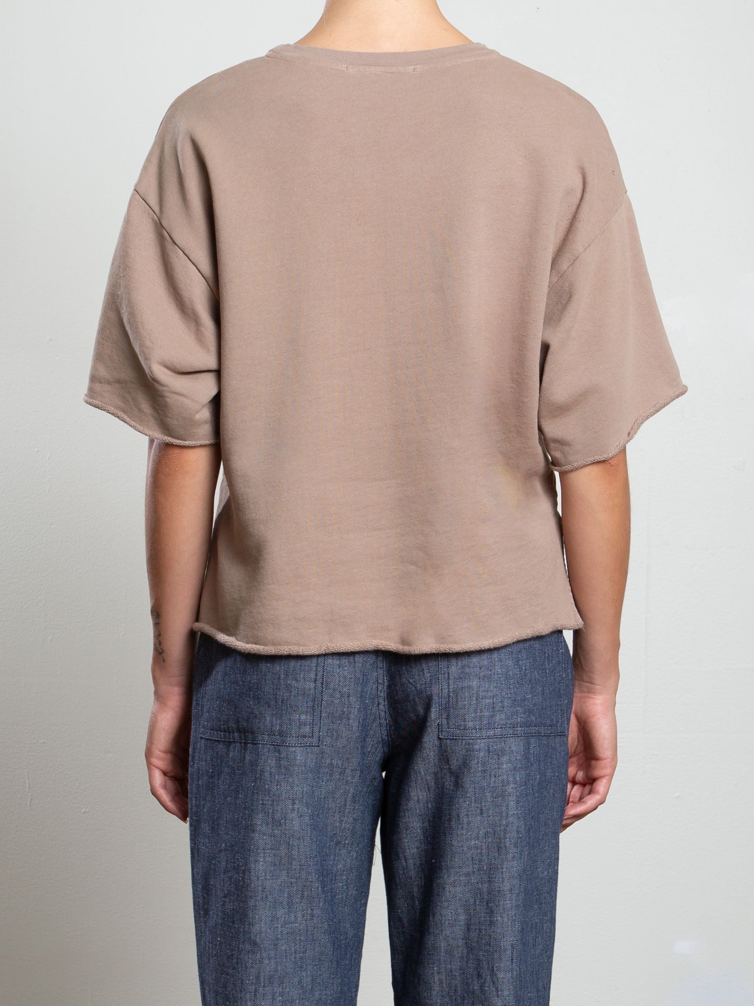 Oversized short sleeve sweatshirt with single chest pocket and raw edges. Made in Los Angeles.
