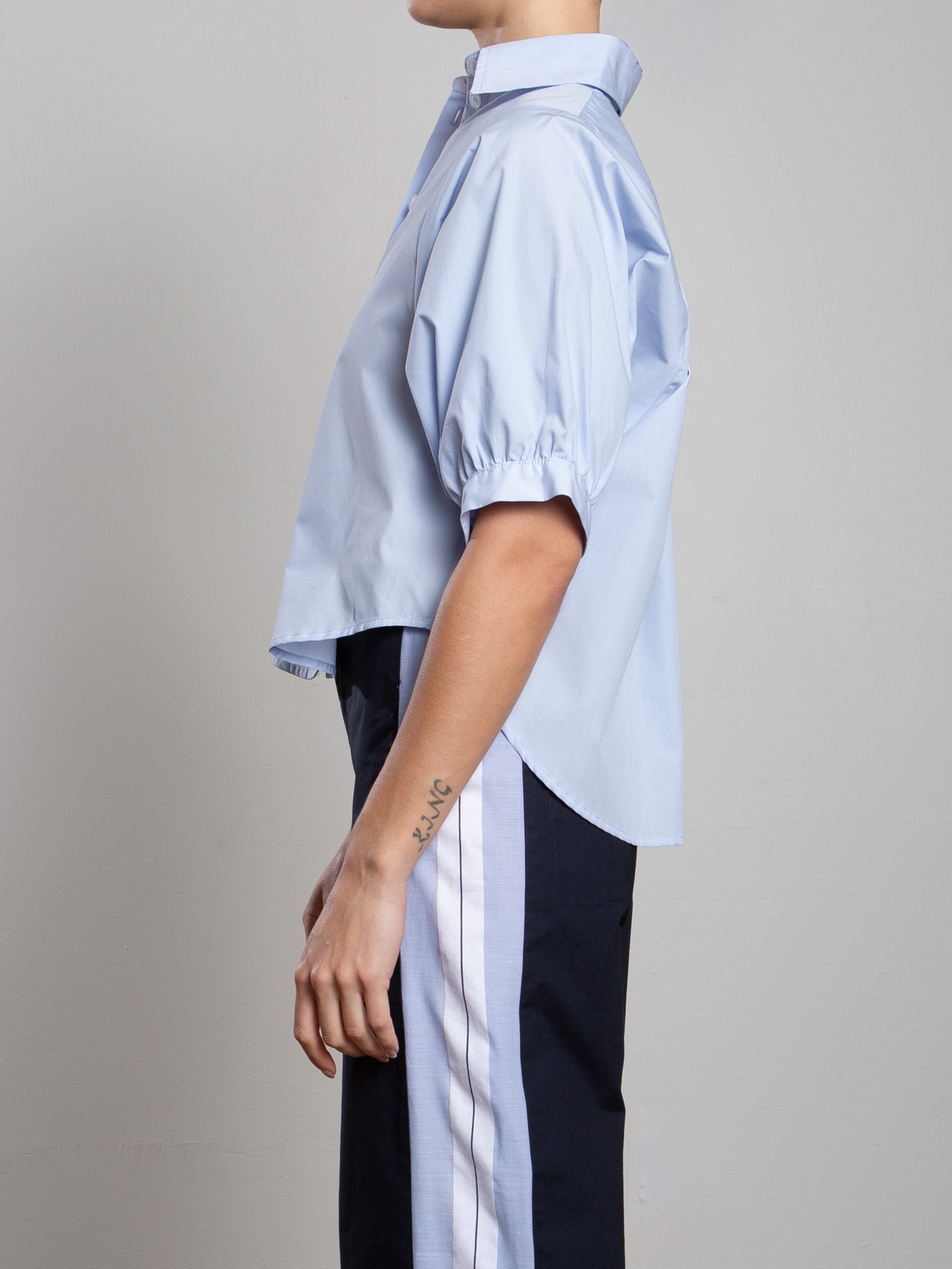 Claude Crop Shirt in Marbella Poplin - Sky
