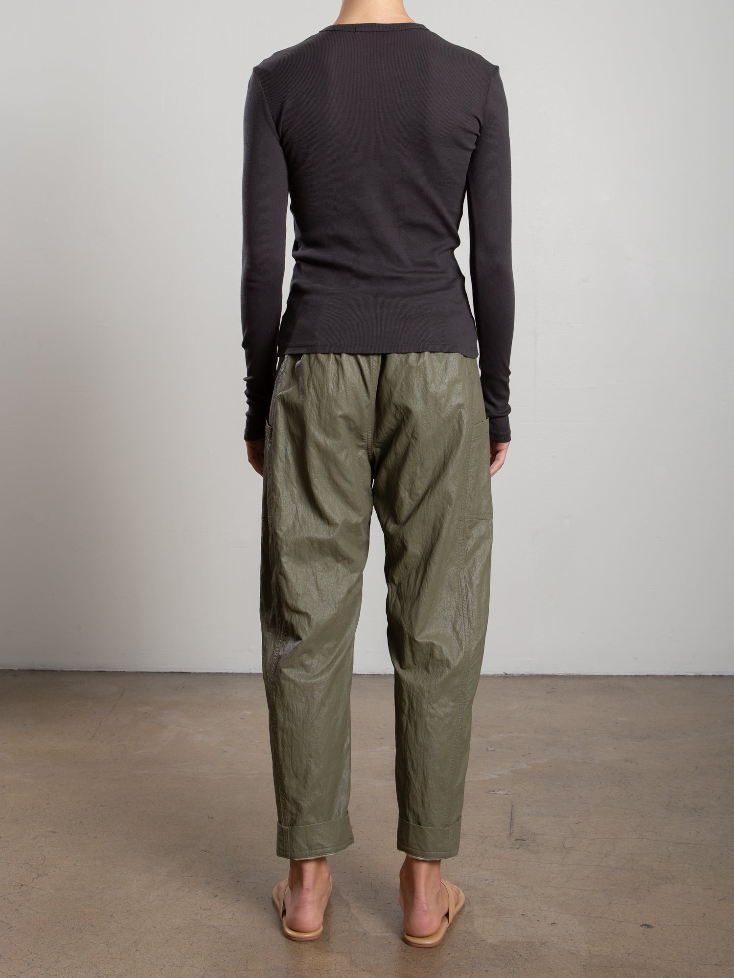 Paneled slight barrel-leg pant with elasticized back waist for ease of wear. Roll up the hem for an ankle fit or leave unrolled for added length.