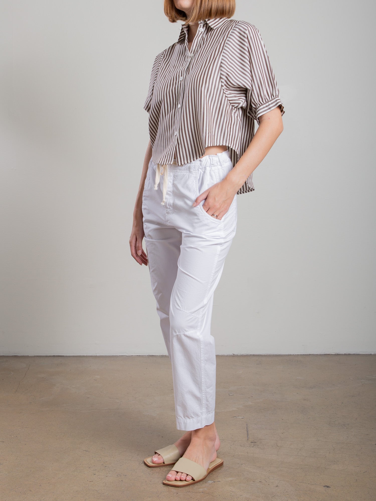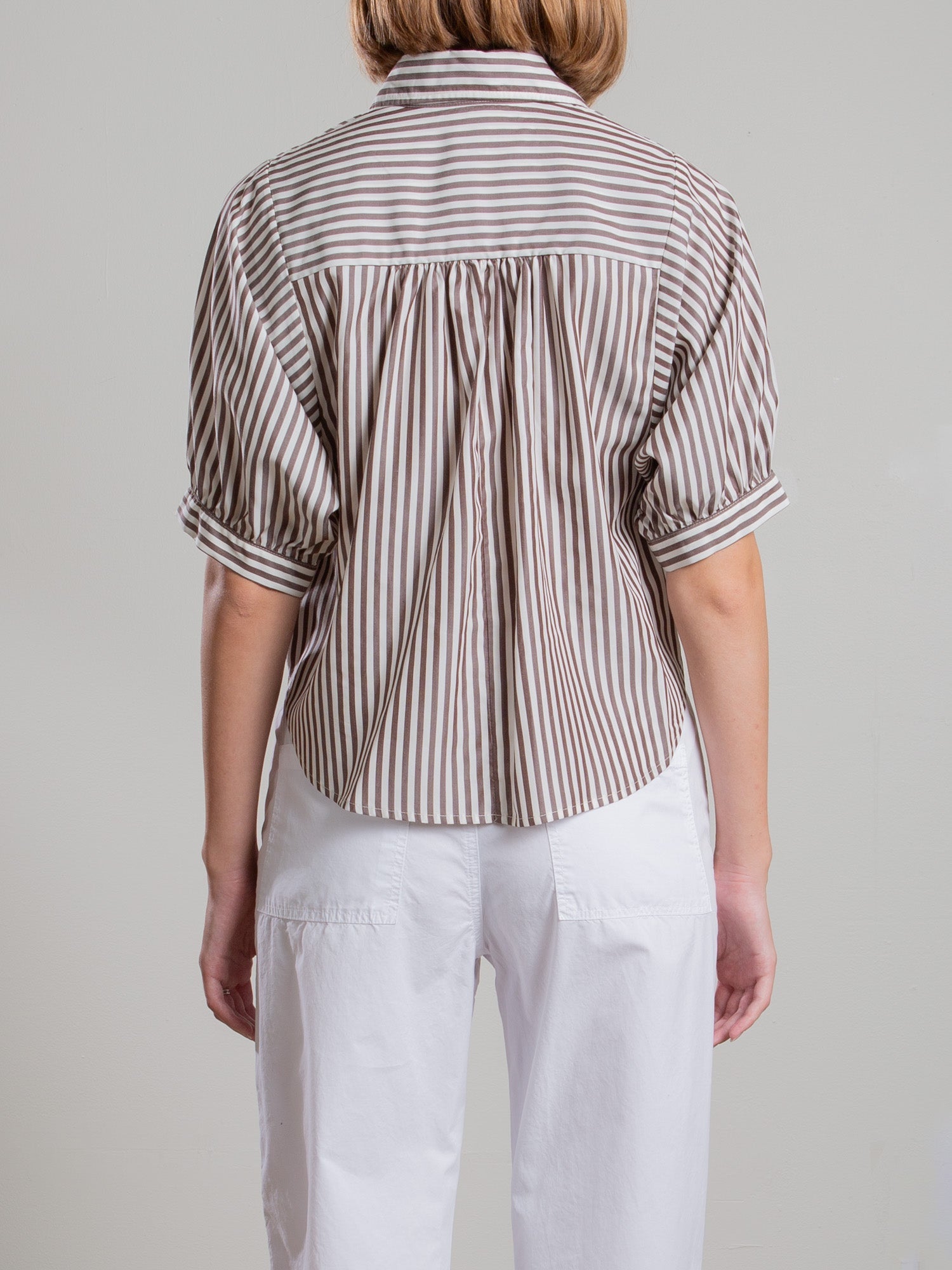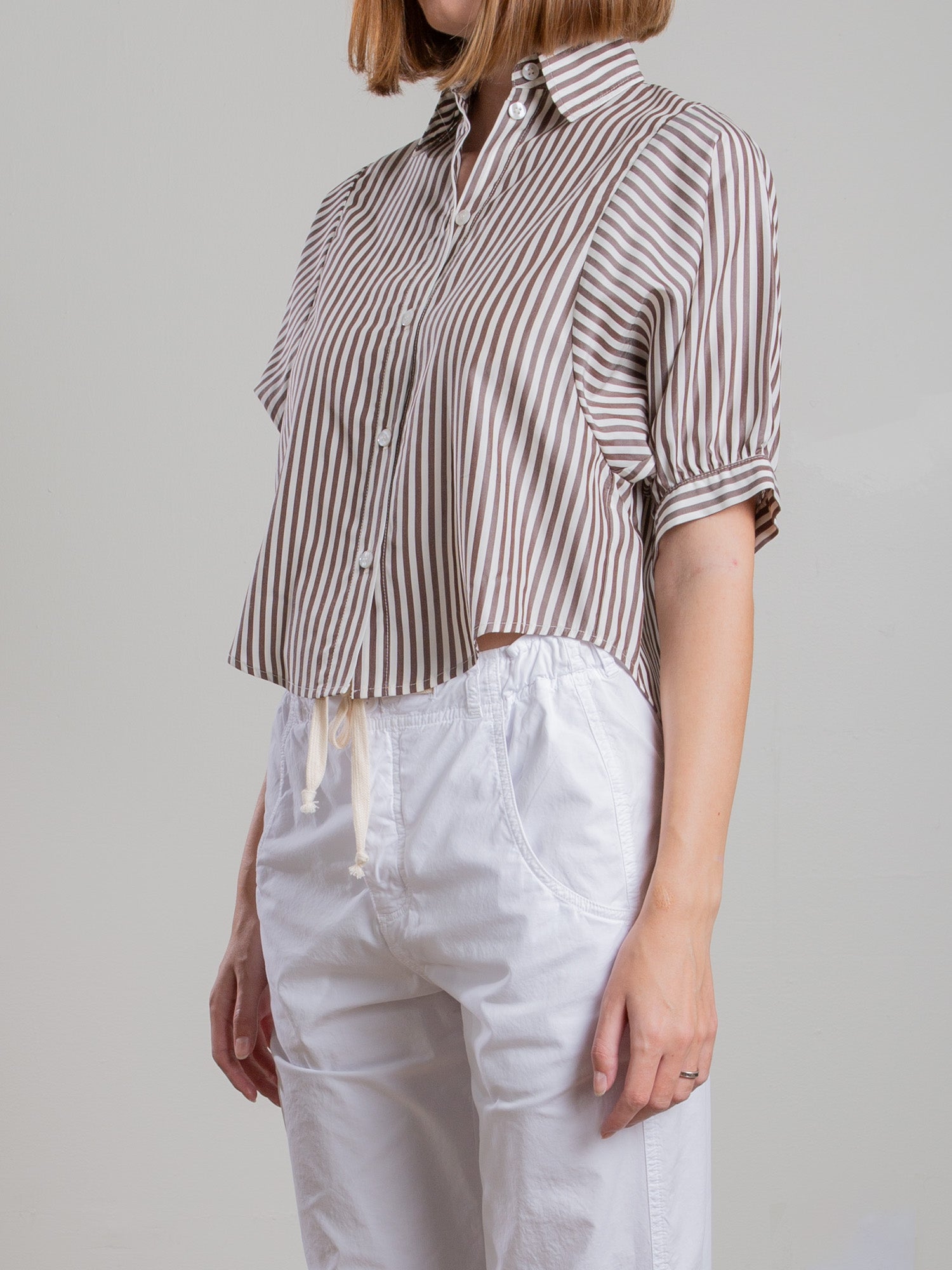 Claude Crop Shirt in Porto Stripe - Brown