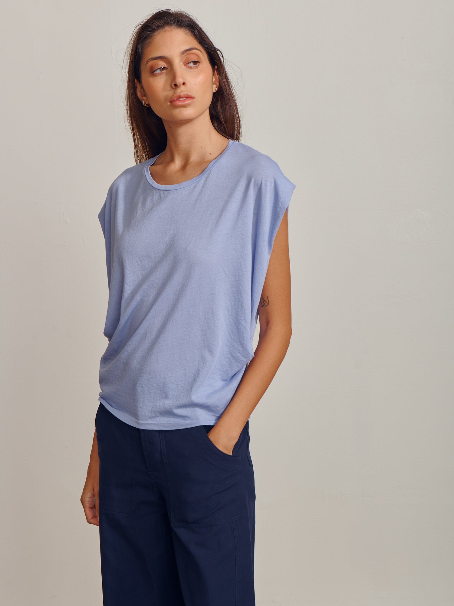 Terrance Tuck Tee in Tissue Jersey - Cornflower