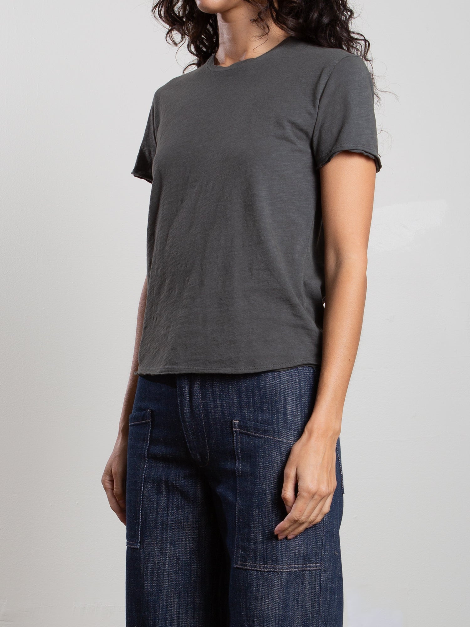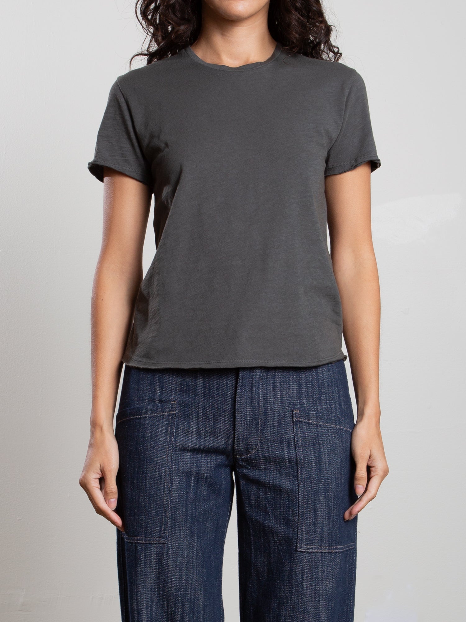 Kerri Boxy Crop Tee in Supima Slub - Black