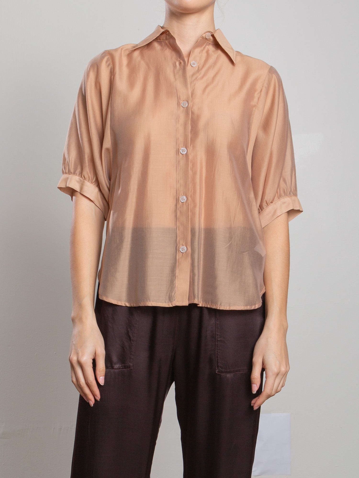 Lynn Shirt in Vintage Satin - Raisin