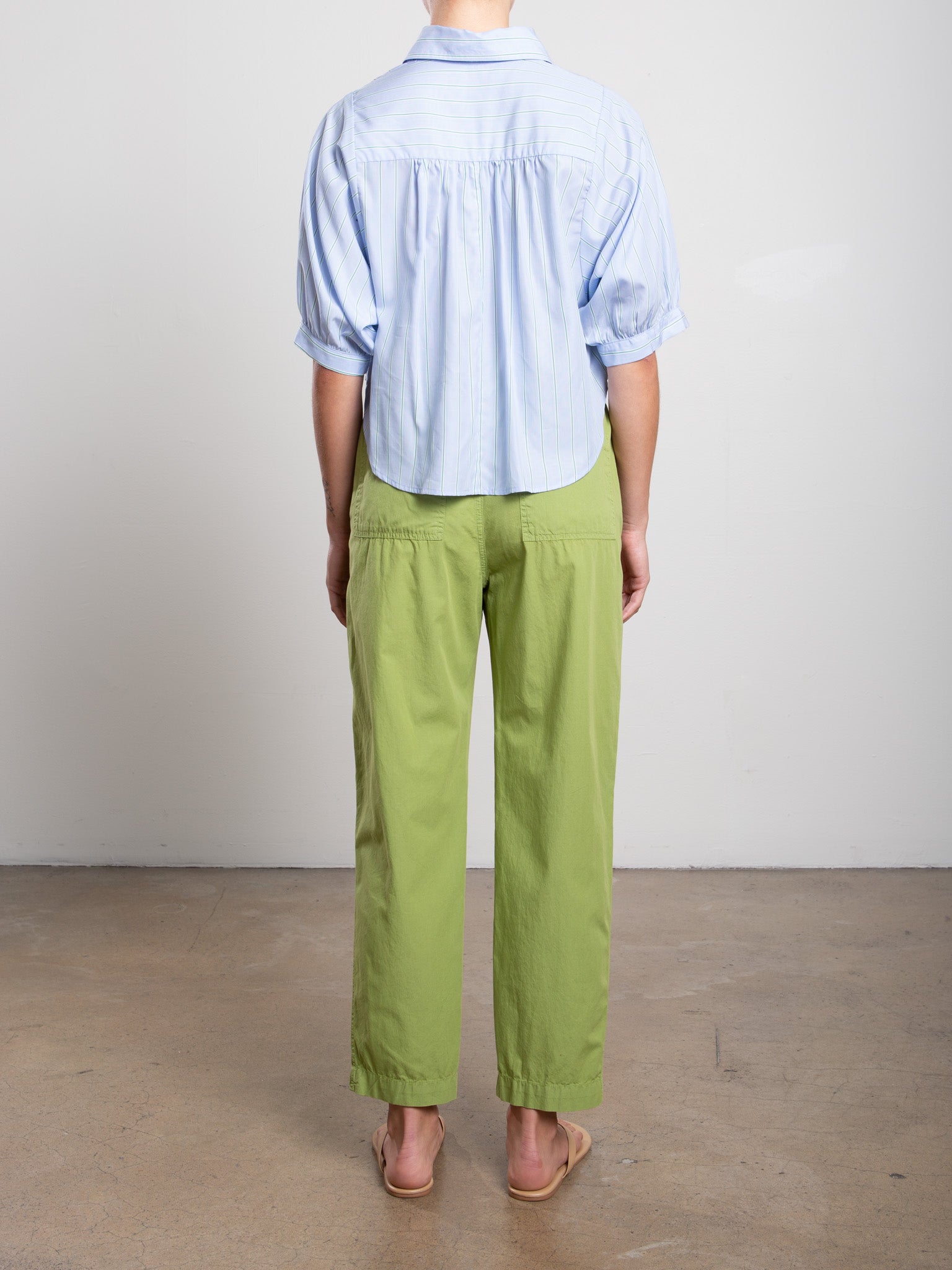 Easy fitting darted barrel pant. Has partial elastic waist and adjustable drawcord for ease of wear.