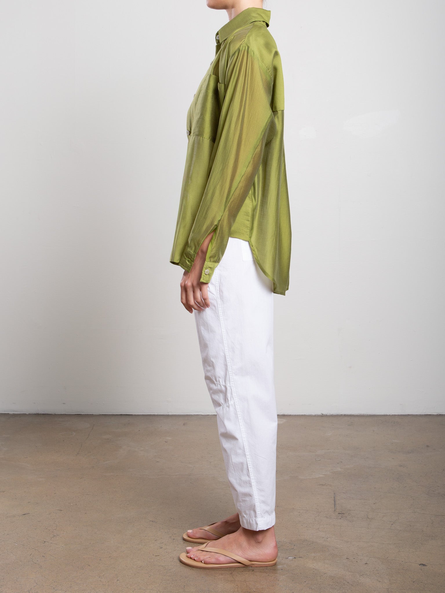 Easy fitting darted barrel pant. Has partial elastic waist and adjustable drawcord for ease of wear.