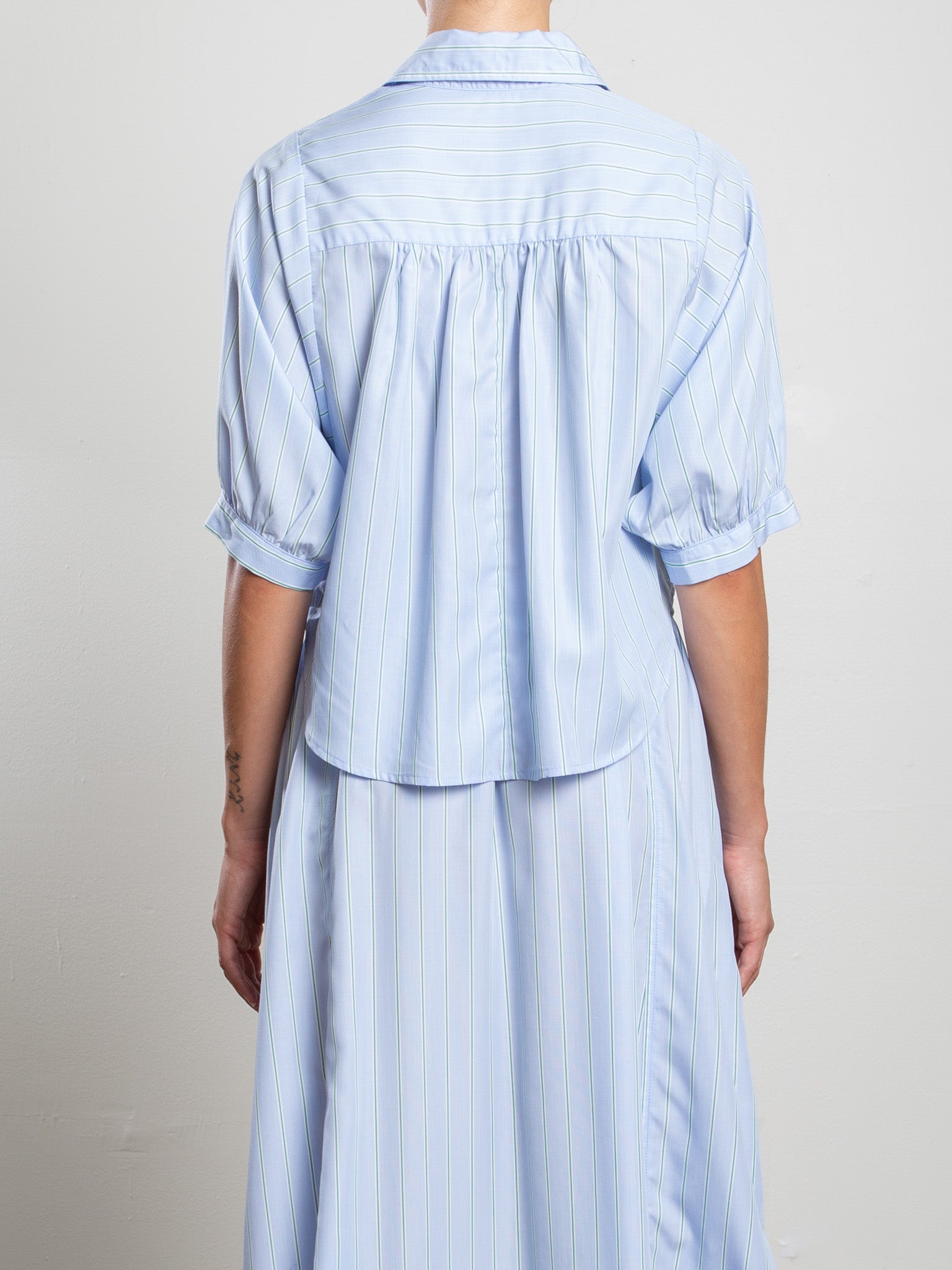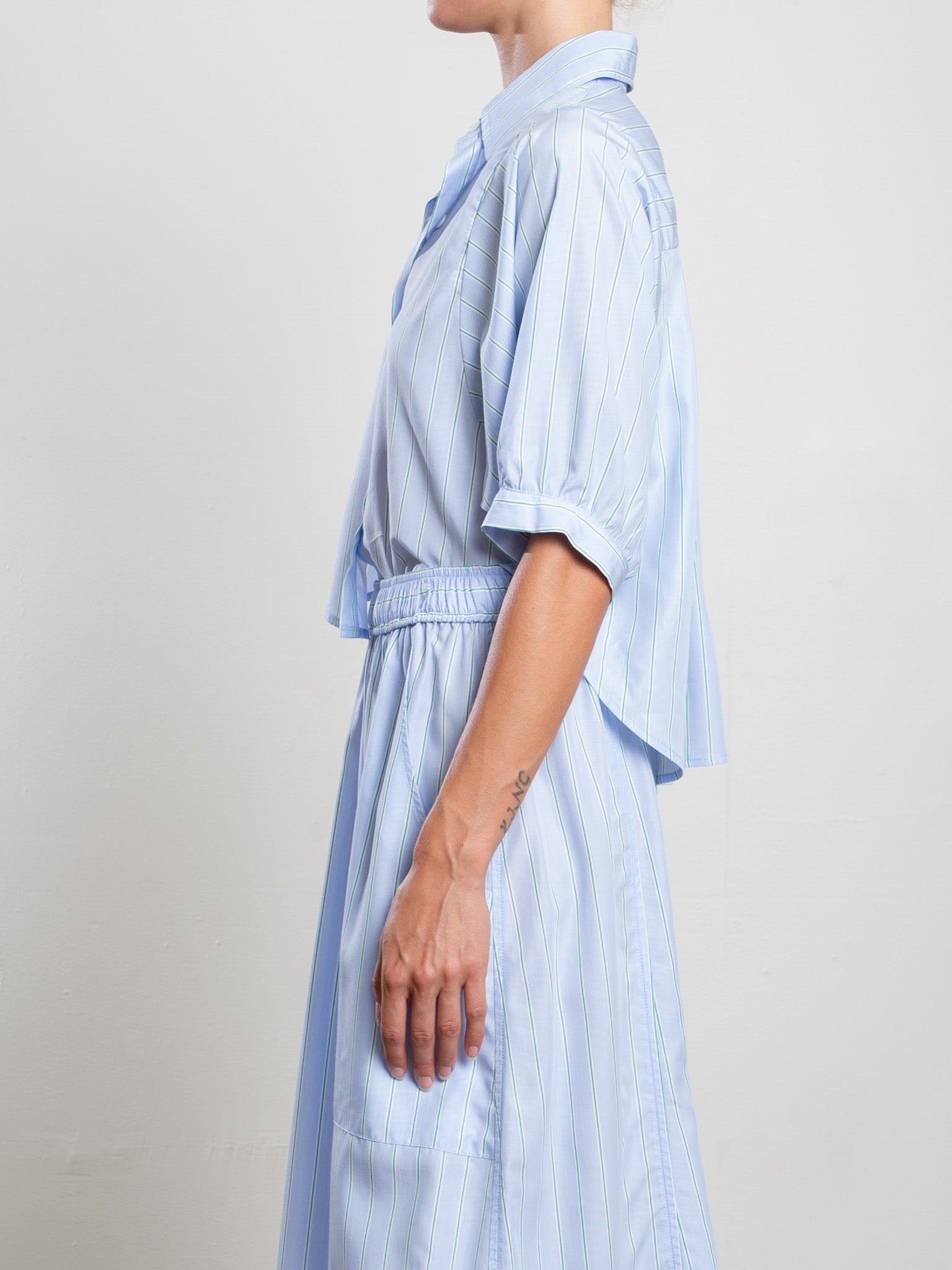 Claude Crop Shirt in Palma Stripe - Sky