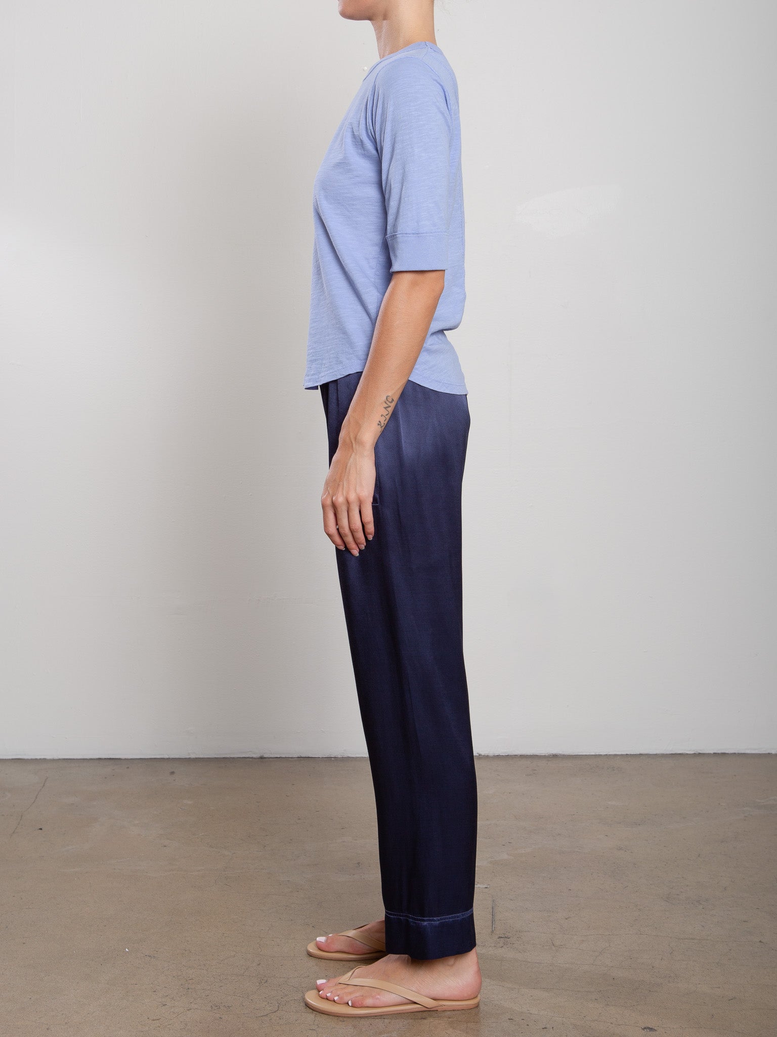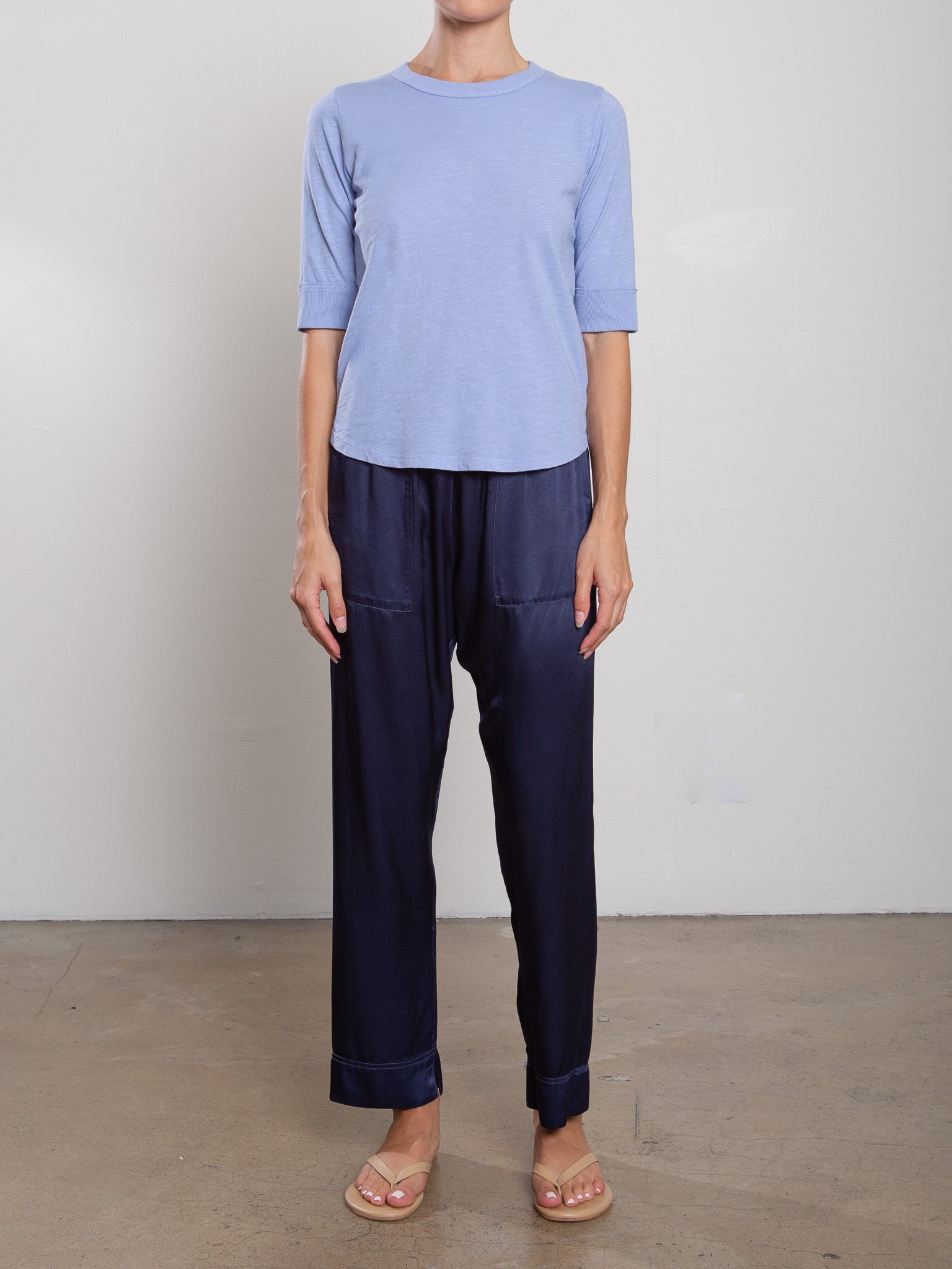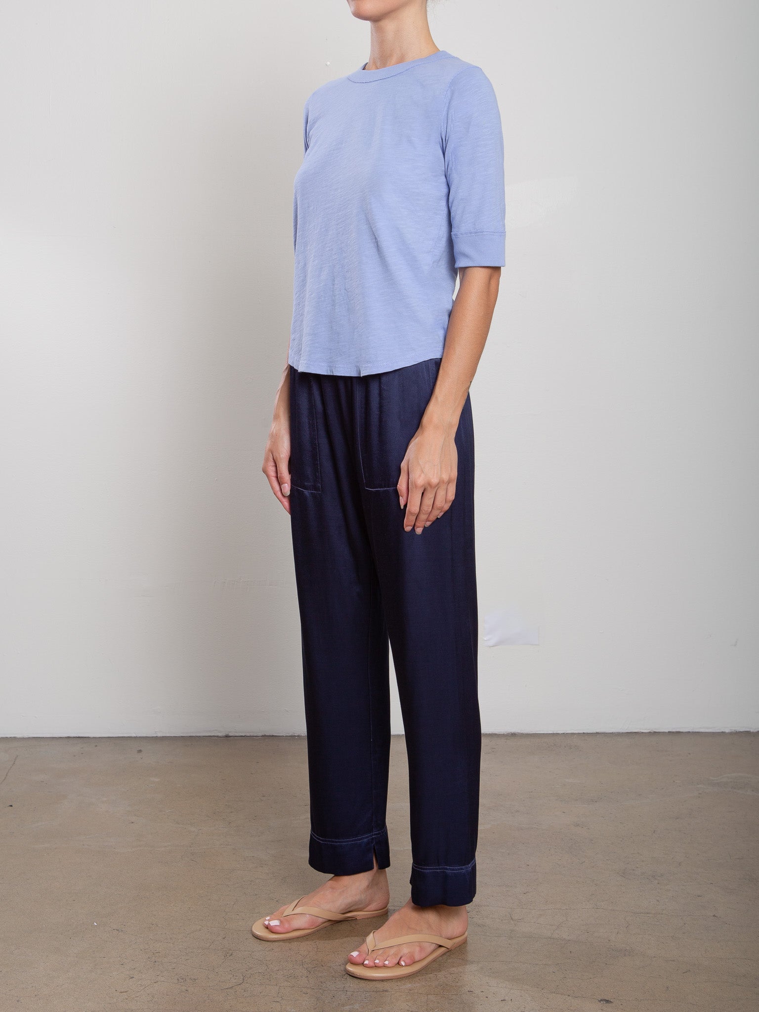 Pull-on ankle-length pant with patch pockets. Has an internal drawstring for a customized fit at the waist.