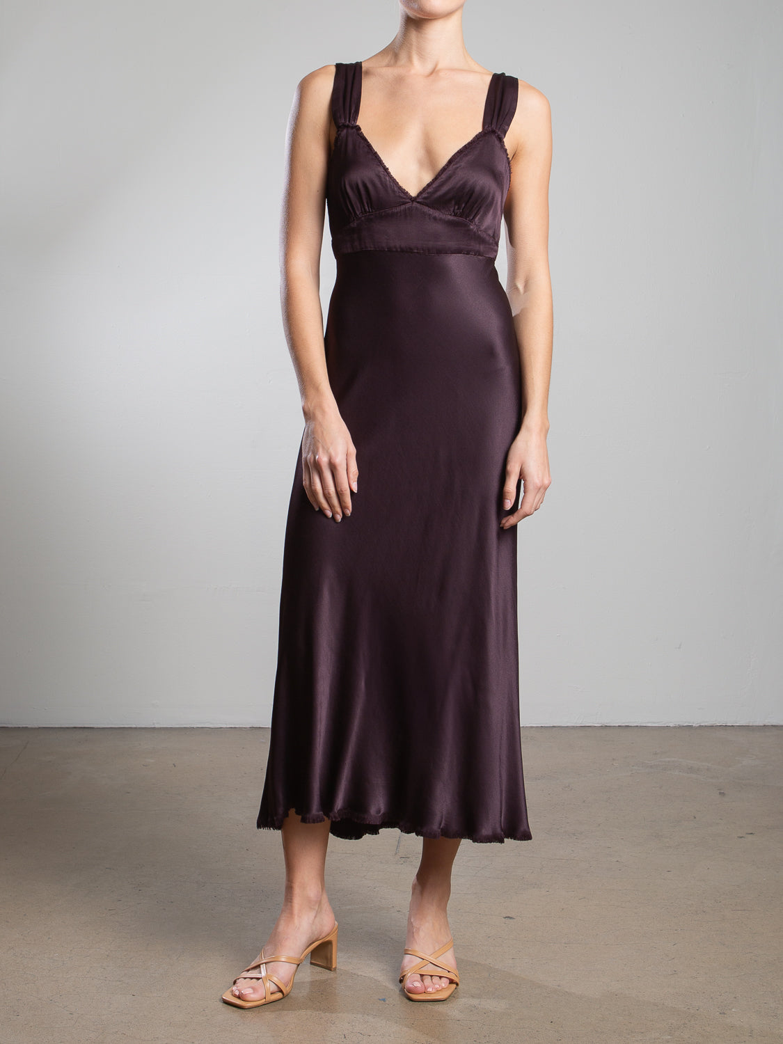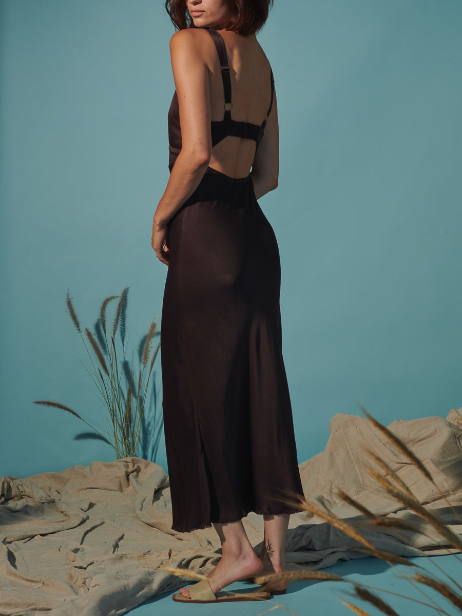 Colette Dress in Vintage Satin - Raisin
