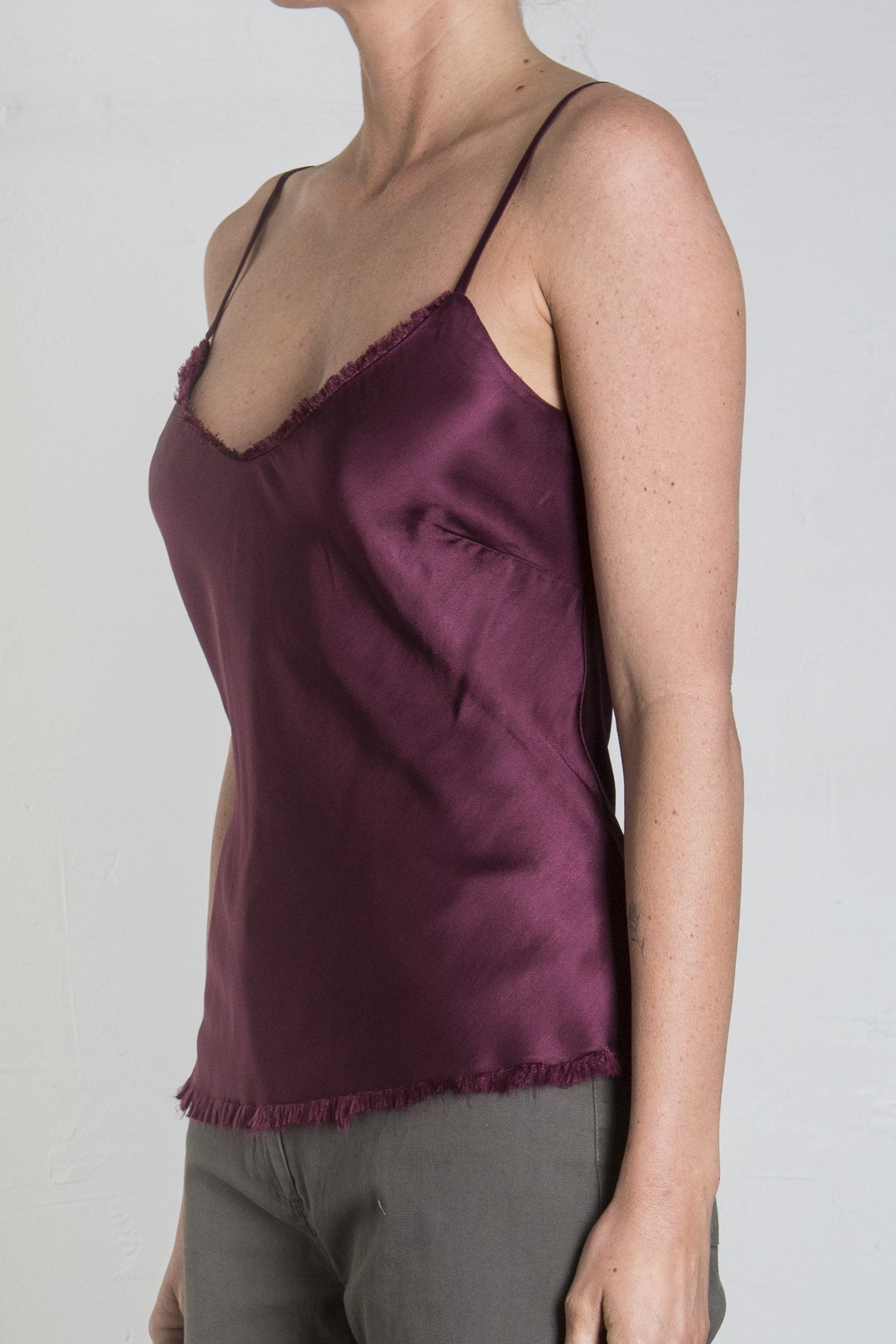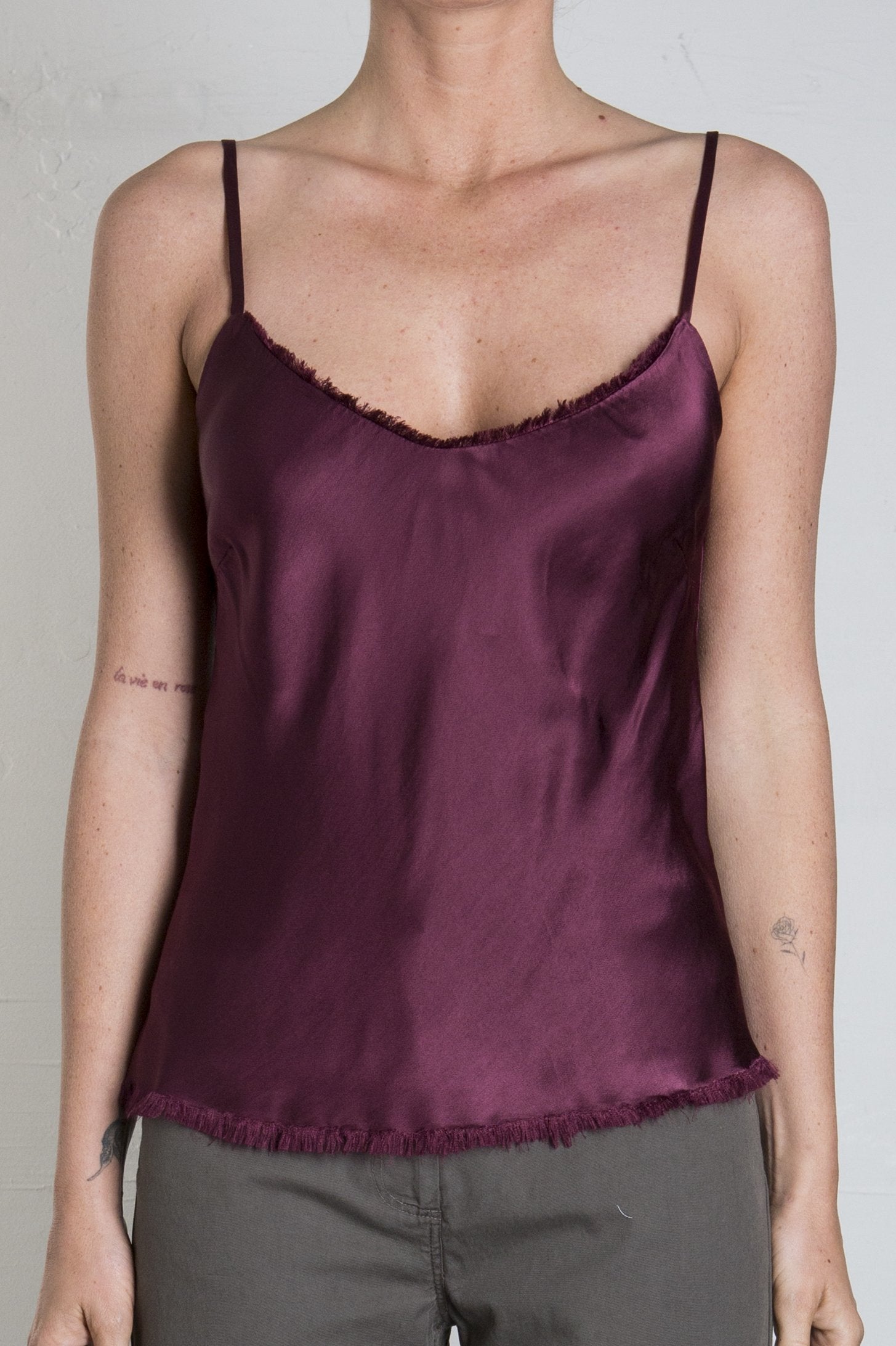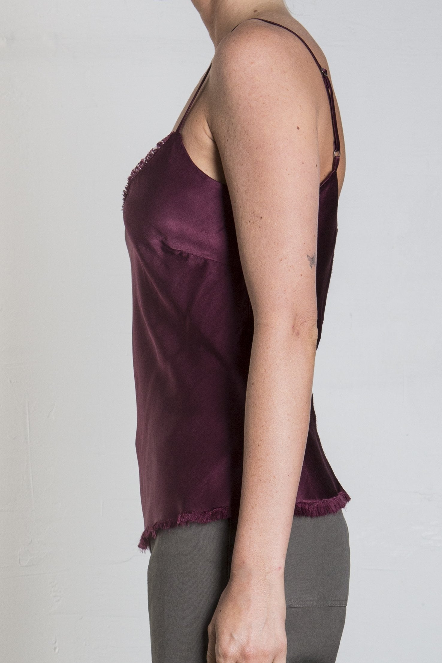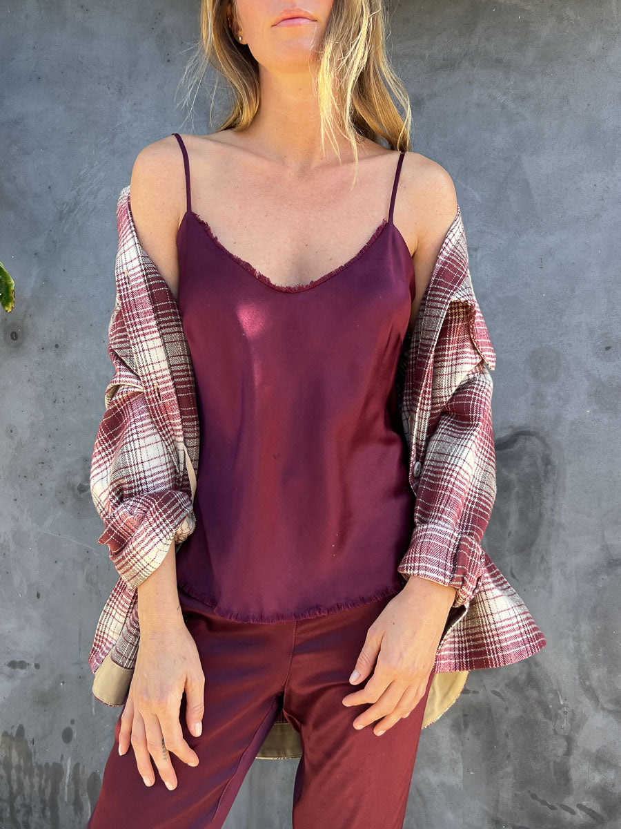 Dawn is a bias cut cami that will fall perfectly on your waist. Features adjustable straps and raw edge trim at the hem and neckline. Great for layering, traveling, and adding a pop of color to any outfit.