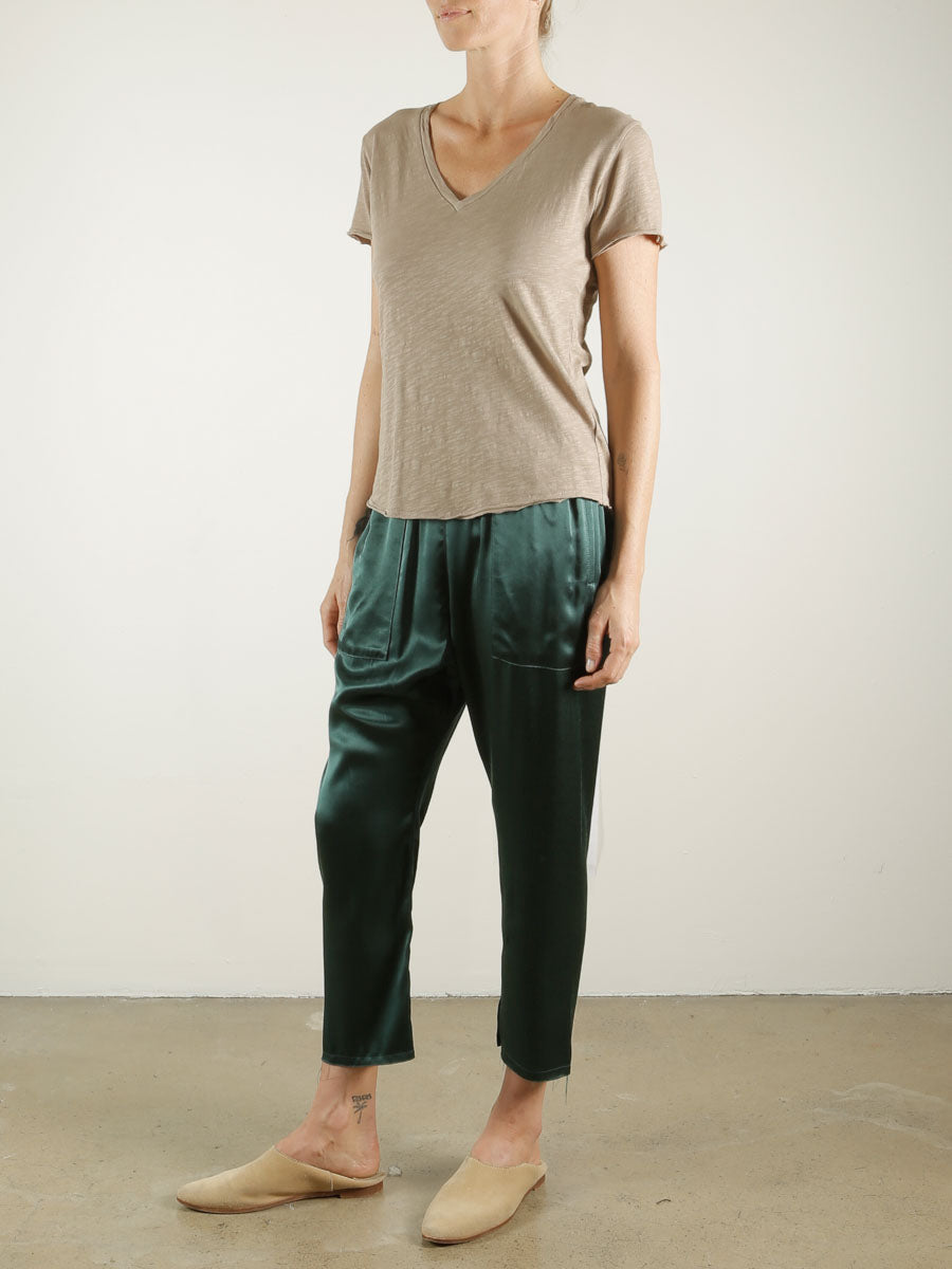 Erika Drop Pant in Vintage Satin - Emerald