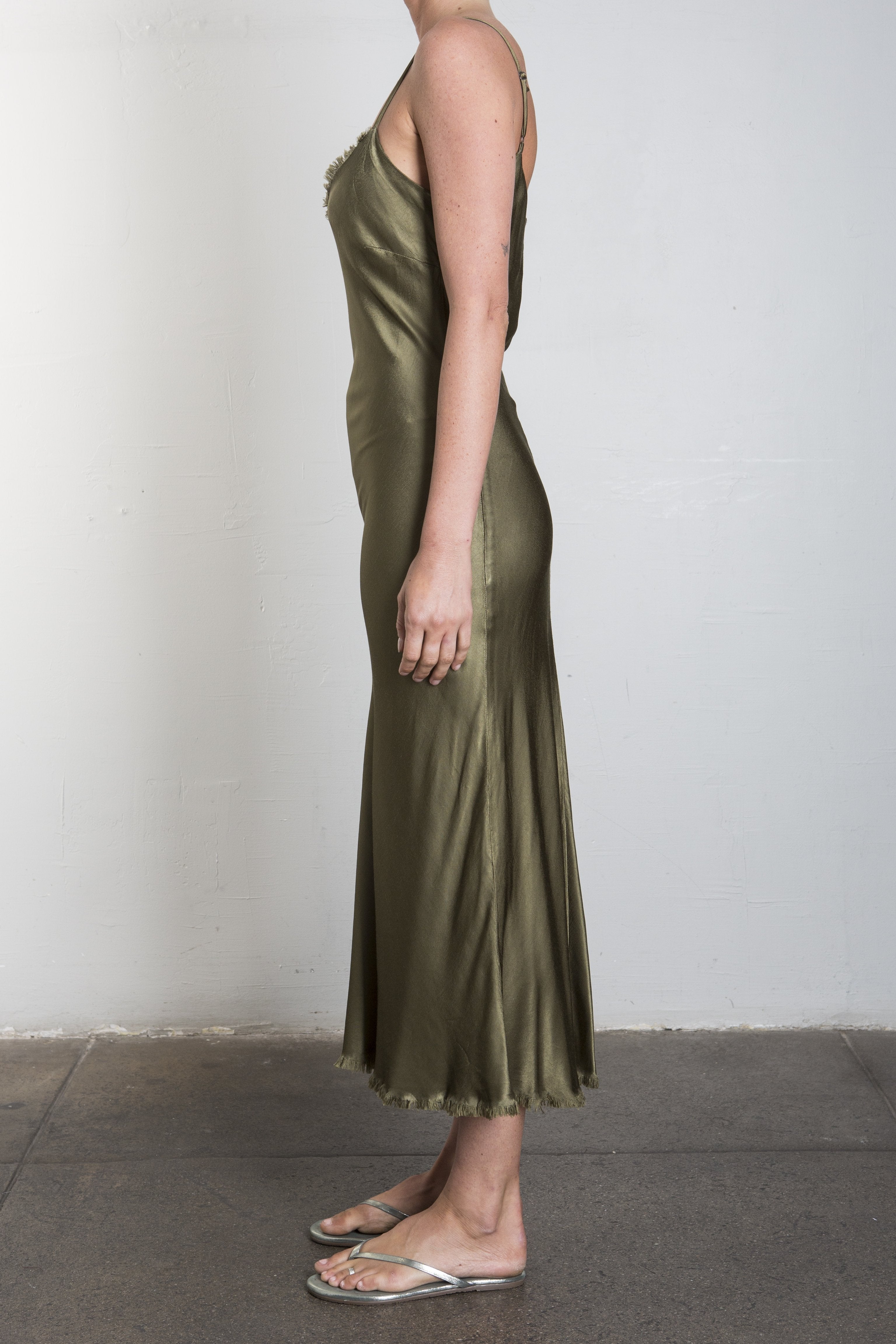 Farrah Slip Dress in Vintage Satin - Olive