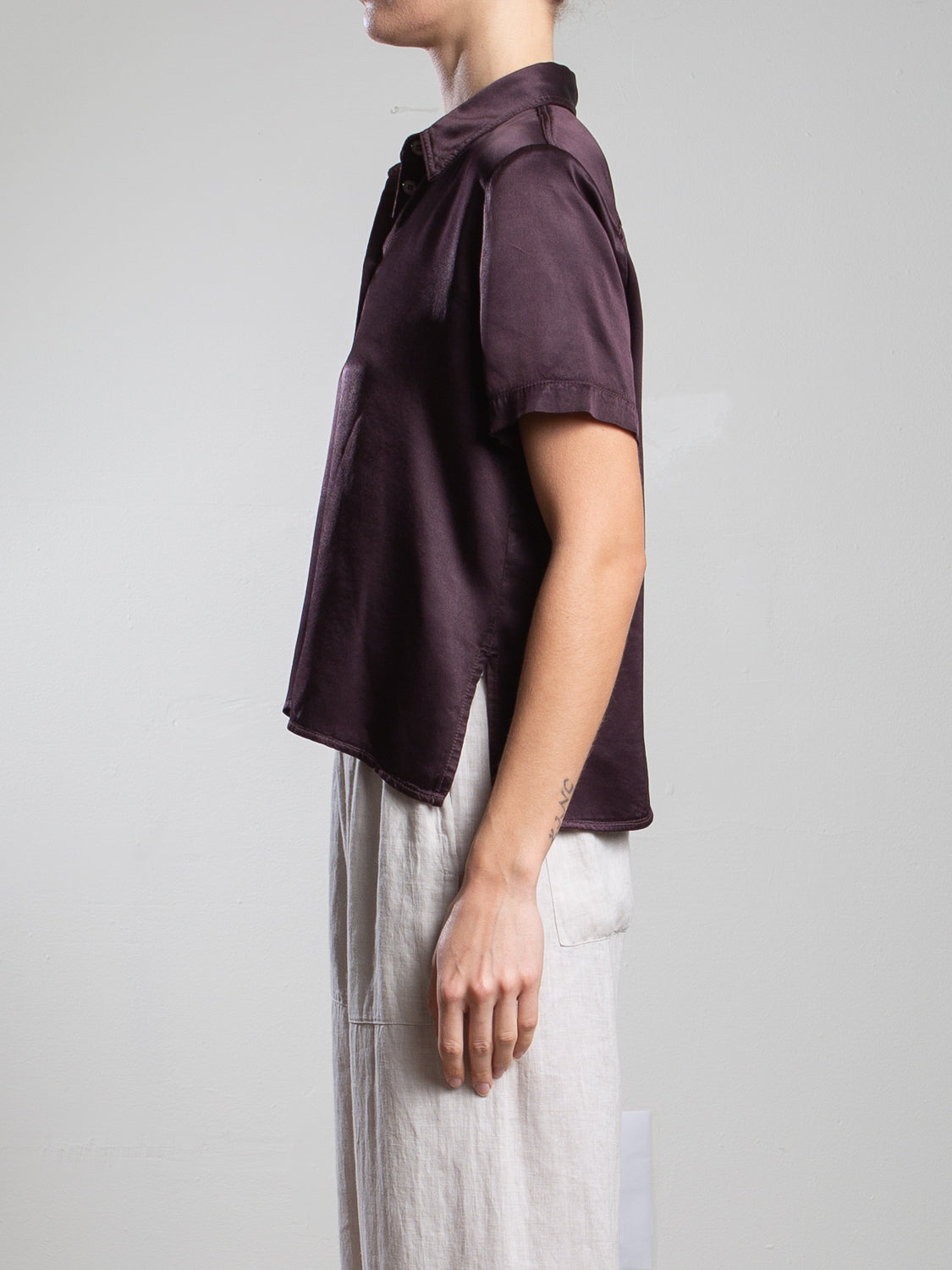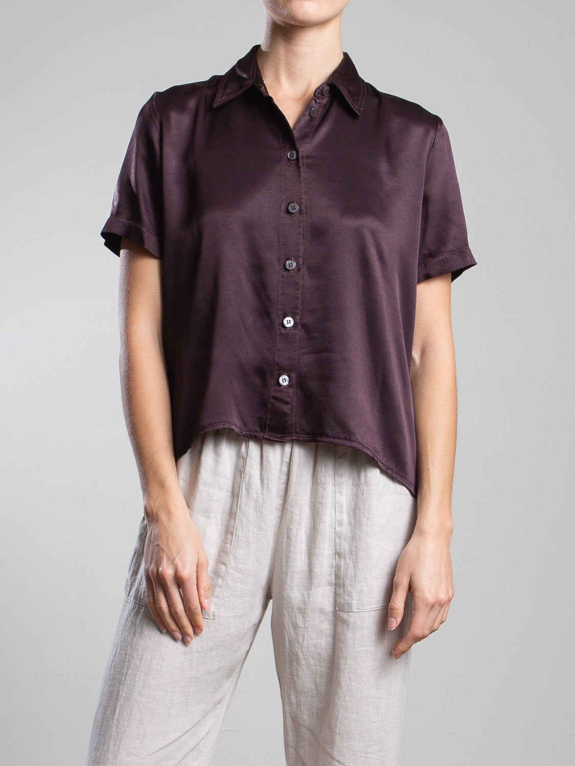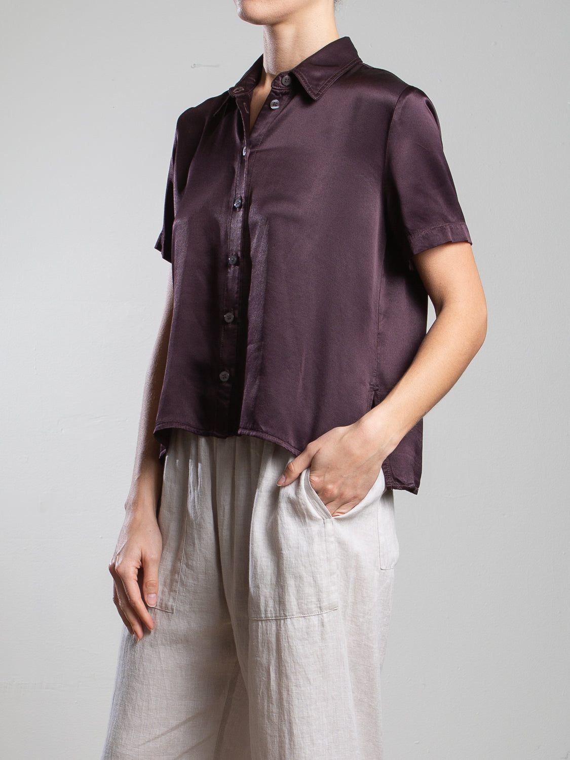 Lynn Shirt in Vintage Satin - Raisin