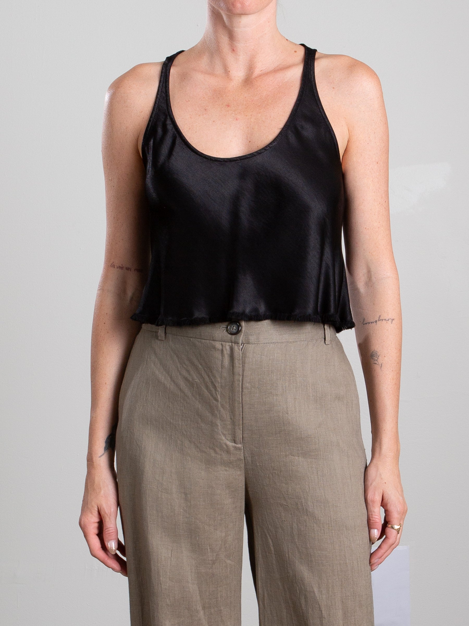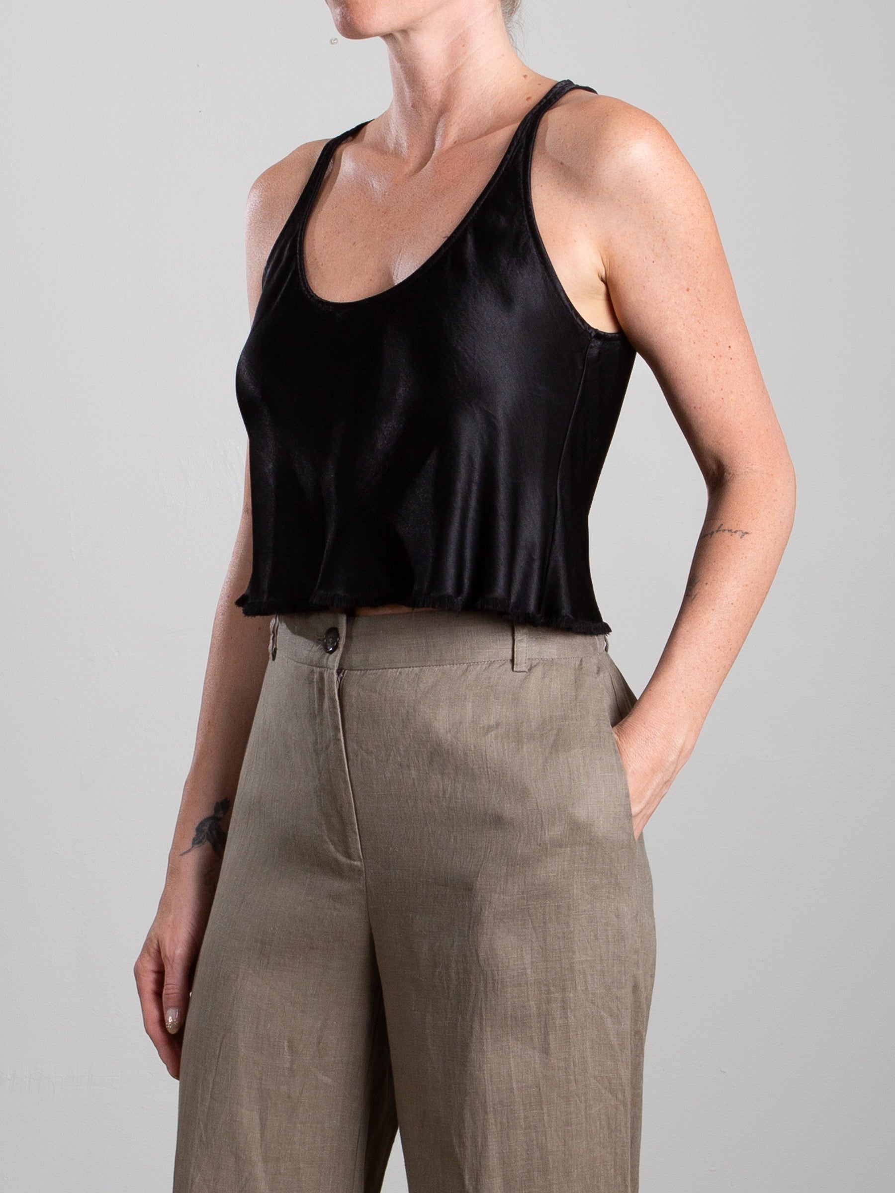 Scoop-neck cropped tank cut on the bias for an effortless drape.