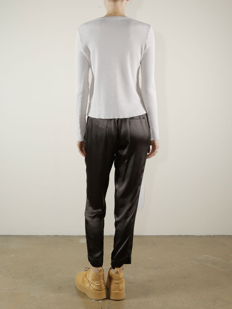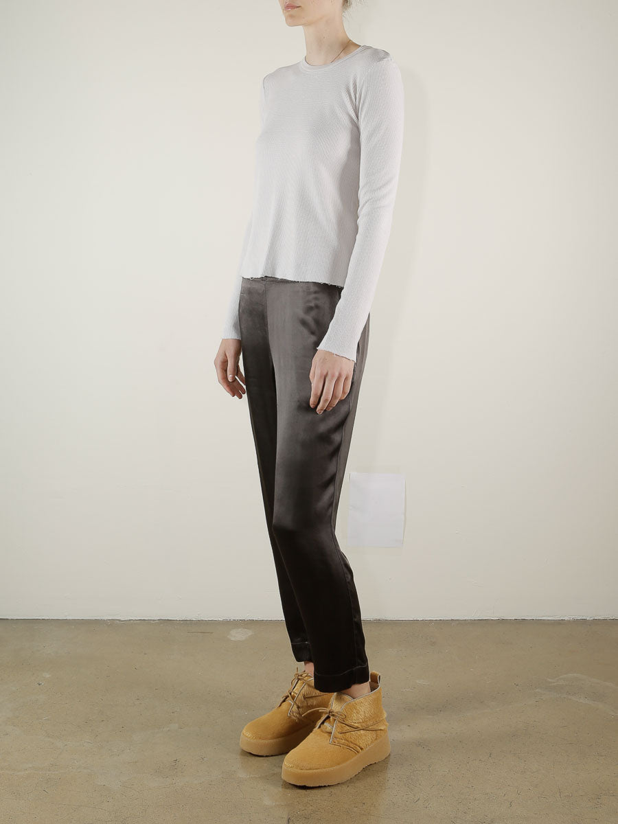 Ainsley is a slim leg pant with an easy pull-on design. She has an elasticized back waistband for comfort, 2 front pockets, and a single welt pocket in back.