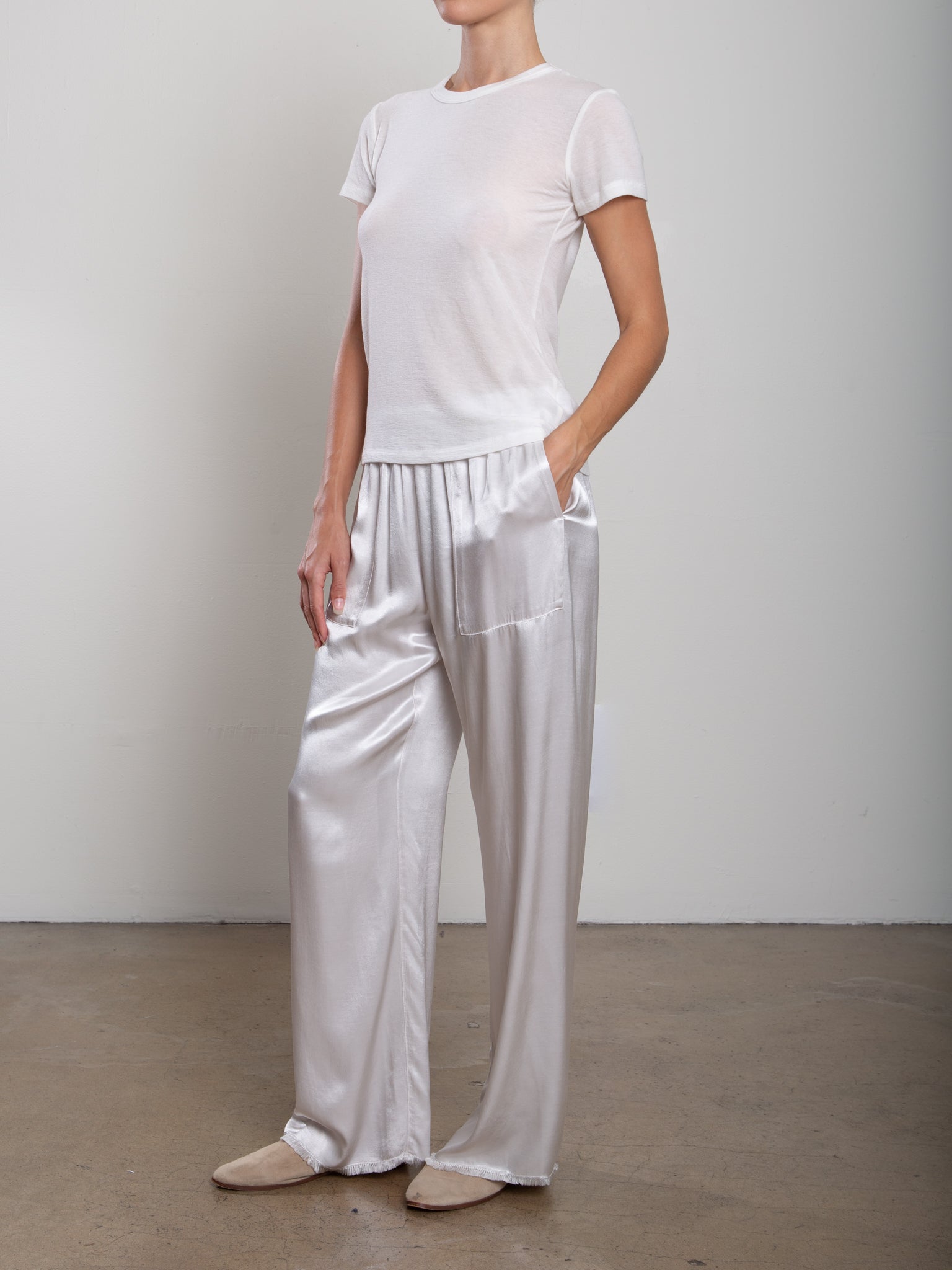 Taryn Pant in Vintage Satin - Parchment