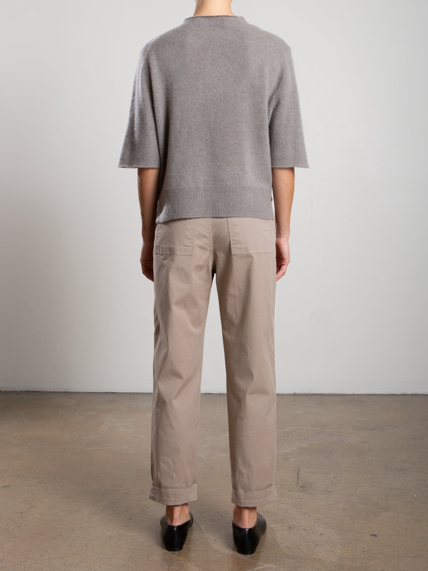 Easy fitting darted barrel pant. Has partial elastic waist and adjustable drawcord for ease of wear.