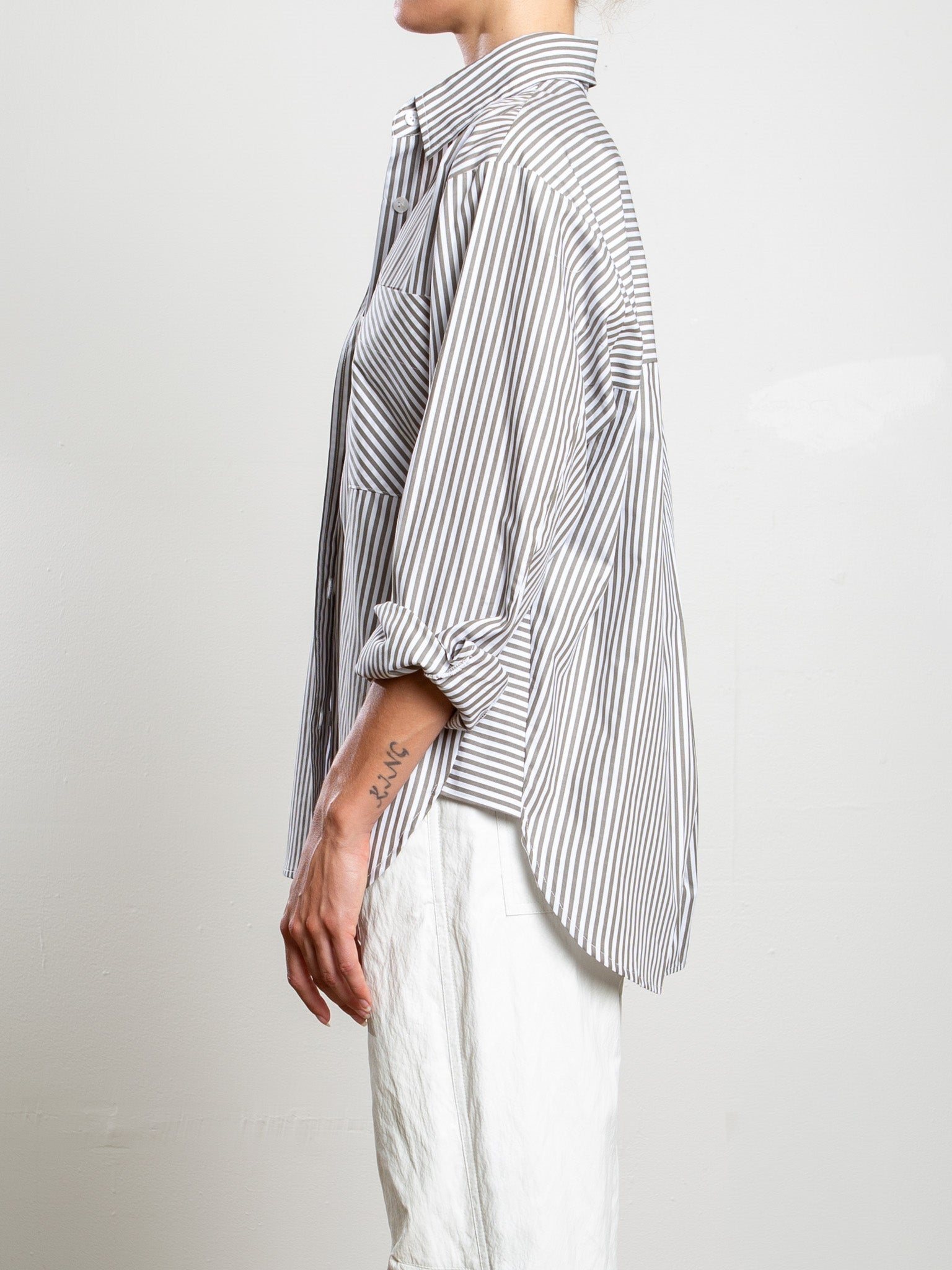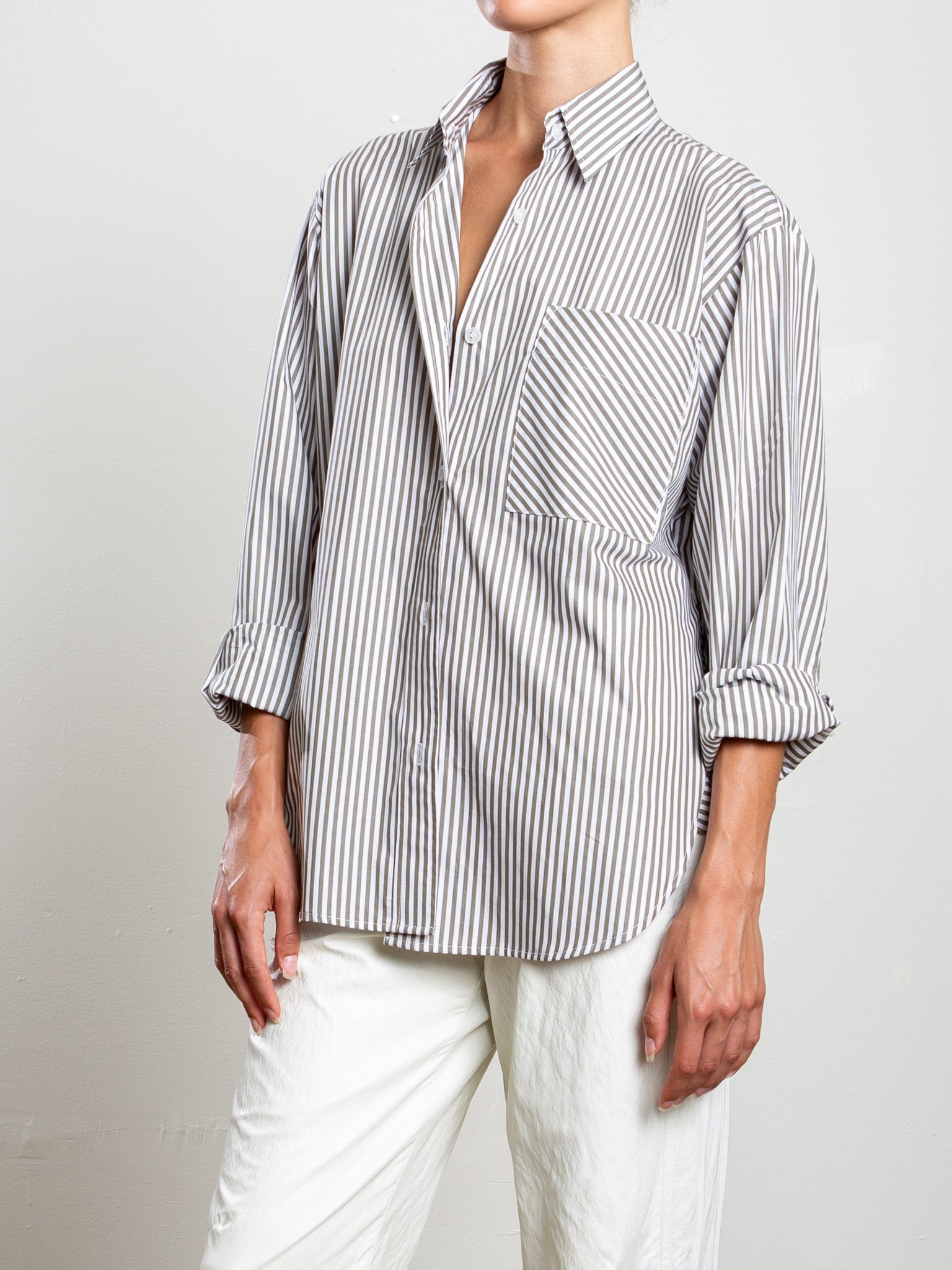 Marvin Shirt in Organic Cotton Stripe - Olive